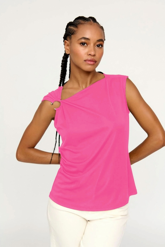 The Tinta Alida short sleeve top, available in sleek black or vibrant fuchsia, combines chic...
