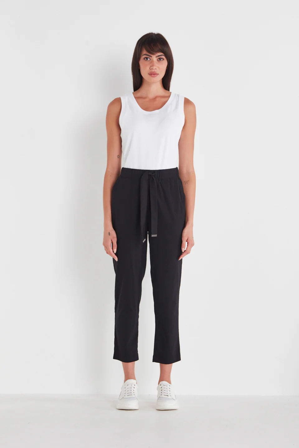The Verge Acrobat Gina Pant offers a soft elastic waistband with a relaxed fit through the hip and thigh, tapering to the ankle for a sleek finish. Featuring angled hip pockets, this pant provides effortless style and practicality. Crafted from Verge's exclusive European stretch cotton Acrobat fabric, it ensures exceptional comfort and freedom of movement.