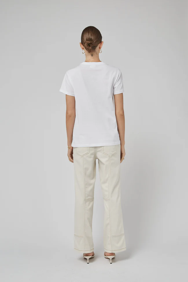 The Dricoper Clare Tee is a timeless staple, offering a classic regular fit with a clean, straight-cut design. Its structured yet relaxed silhouette provides a naturally slimming effect, making it a flattering choice for all body types.