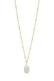 The Cove Gold Necklace by Liberte features a fine chain with a moveable freshwater pearl pendant and evenly spaced small ball accents for a touch of elegance. With a mid-length design of 60 cm and a 3 cm extension chain, this necklace is the perfect piece for layering or wearing alone. Crafted with microplated, nickel-free materials, it offers both style and comfort for everyday wear.