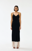 The Kinney Dolly Dress is classic silhouette while being a statement piece with a playful twist. Crafted from a soft viscose blend, this maxi dress features a classic black base trimmed with contrast ivory fringe along the hemline for a fun point of difference.