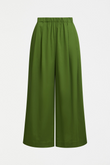 Waist tucks add fullness through the leg, adding to the drama of the wide leg shape.