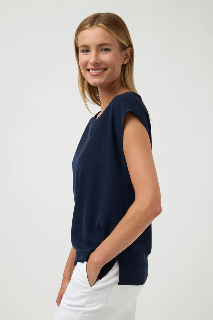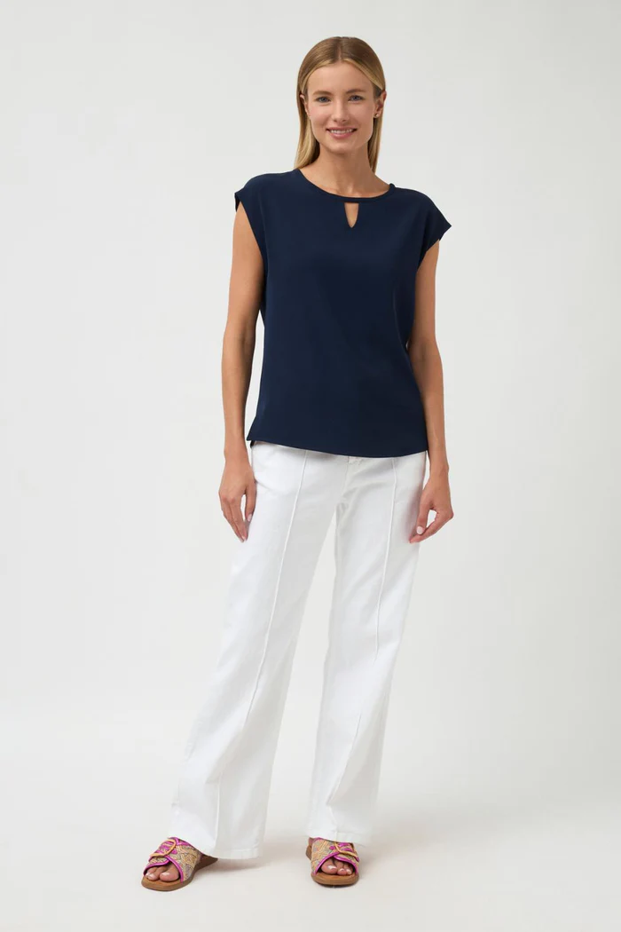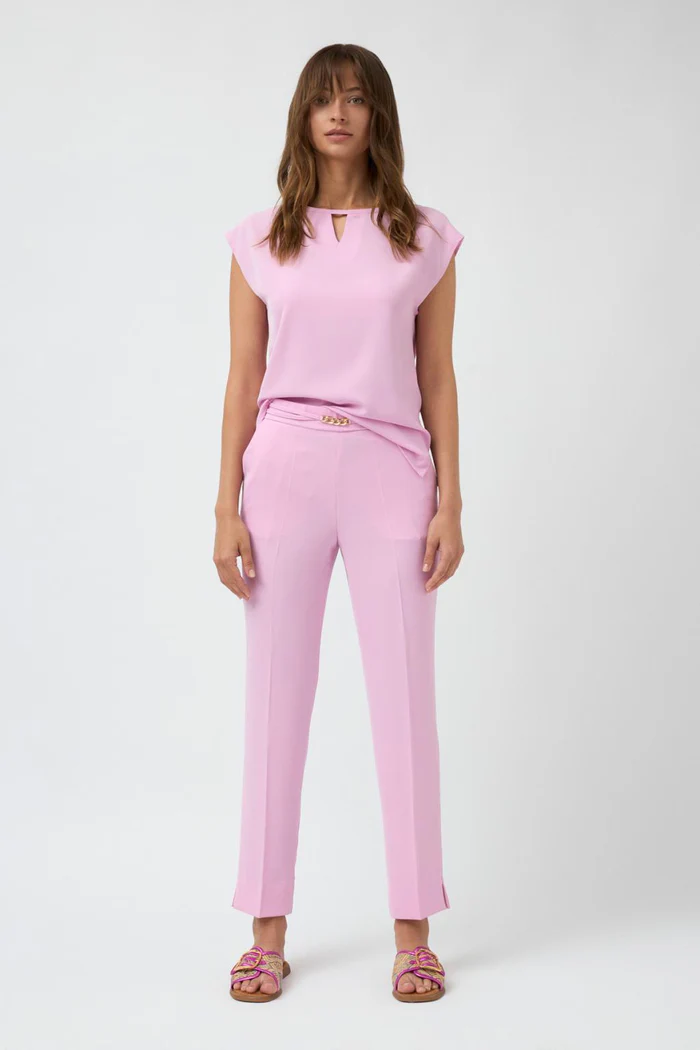 The Tinta Elvas Top, available in Pink or Blue, offers effortless elegance in a timeless design. Cut in a loose, straight silhouette from lightweight, soft-touch fabric, it ensures comfort with a touch of sophistication. Featuring a round neckline with a subtle keyhole detail, cap sleeves, and a straight hem, this versatile blouse is perfect for both work and weekend wear. Thoughtfully designed and made in Spain.