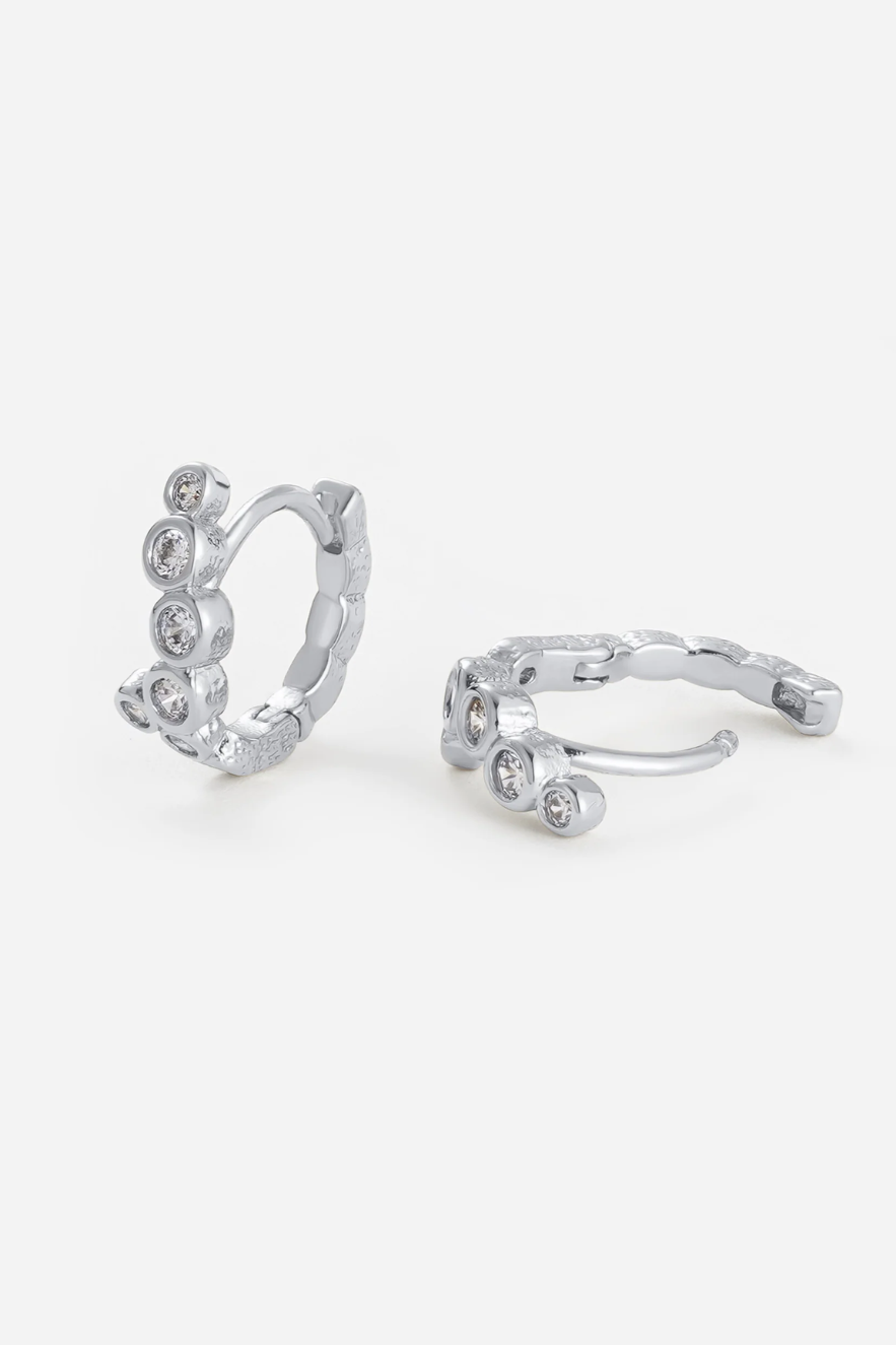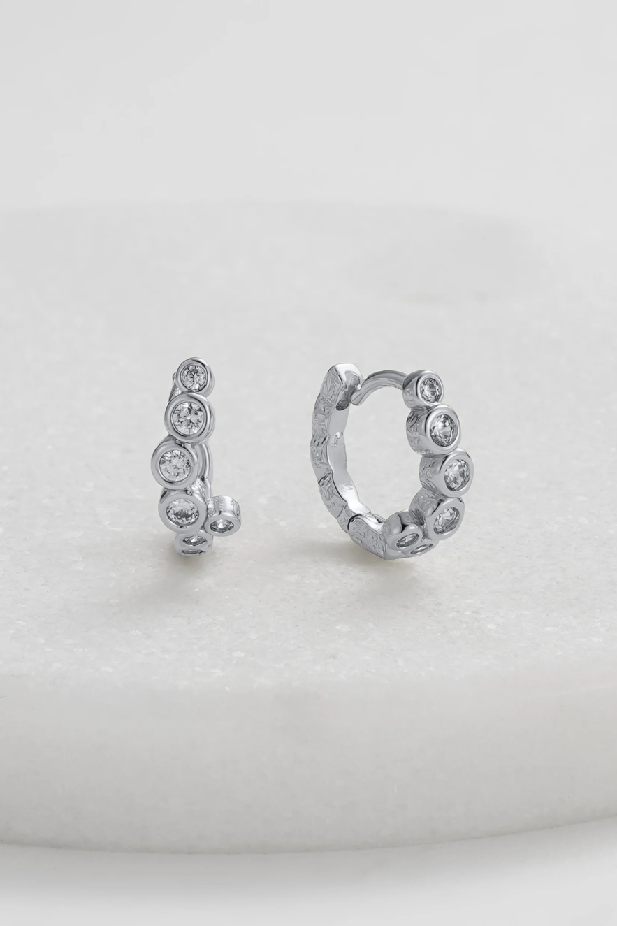 The Florence Huggie by Zafino is a crystal huggie earring that features an organic, fluid shape, adding a soft, elegant sparkle to any look. Perfect for both day-to-night wear, these huggies offer a refined, understated shine. Available in 18K gold plated or silver rhodium plated options, they provide a versatile and timeless addition to your jewelry collection.