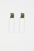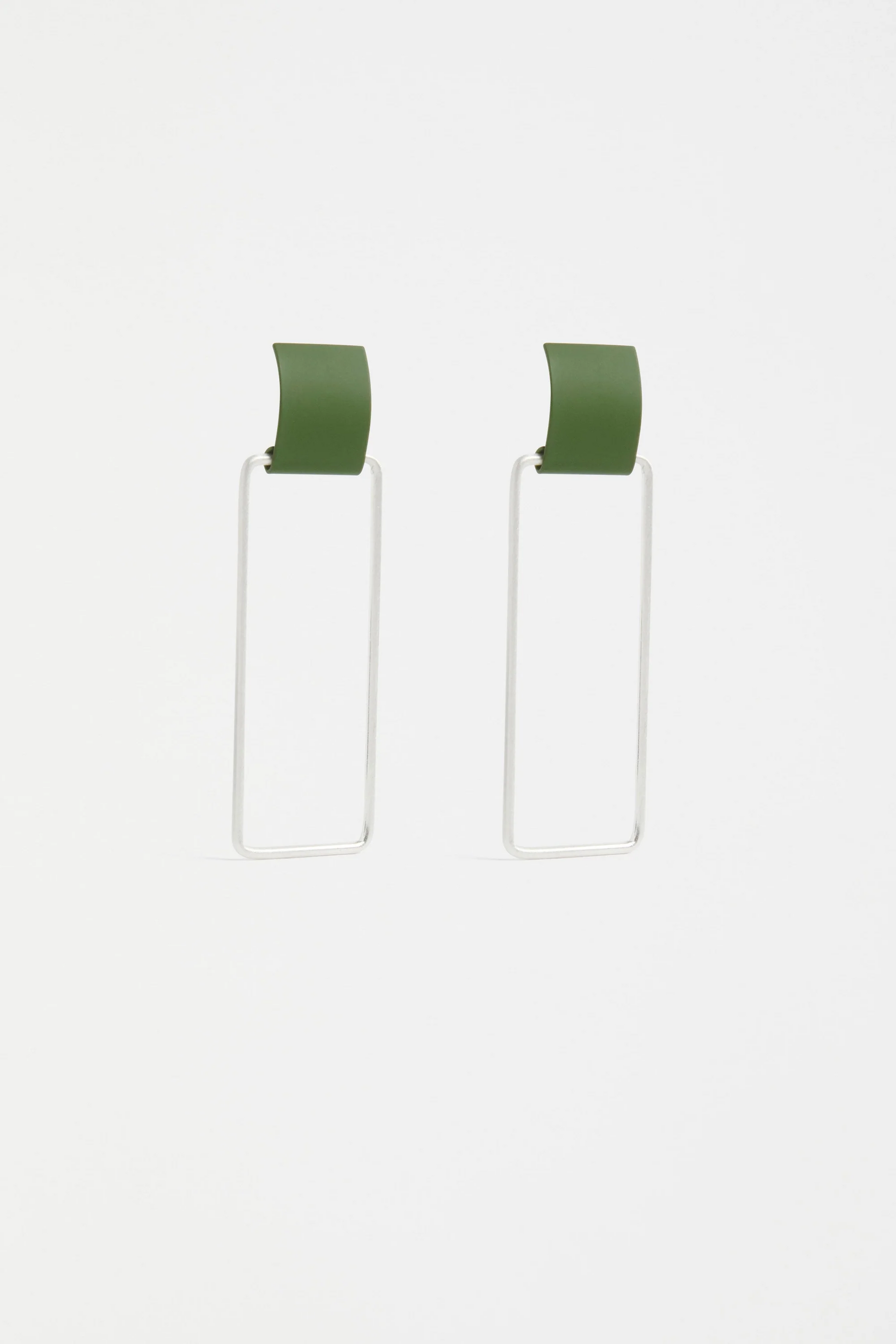 The Elk The Label Kvad Earring offers a modern, geometric take on the classic drop earring. A slim brushed metal frame swings freely behind a sleek, rubberised rectangular base, creating a striking contrast of textures. Designed for effortless movement and lightweight comfort, this minimalist piece transitions seamlessly from day to night. Available in a muted Green Moss hue, it’s the perfect balance of understated elegance and contemporary edge.