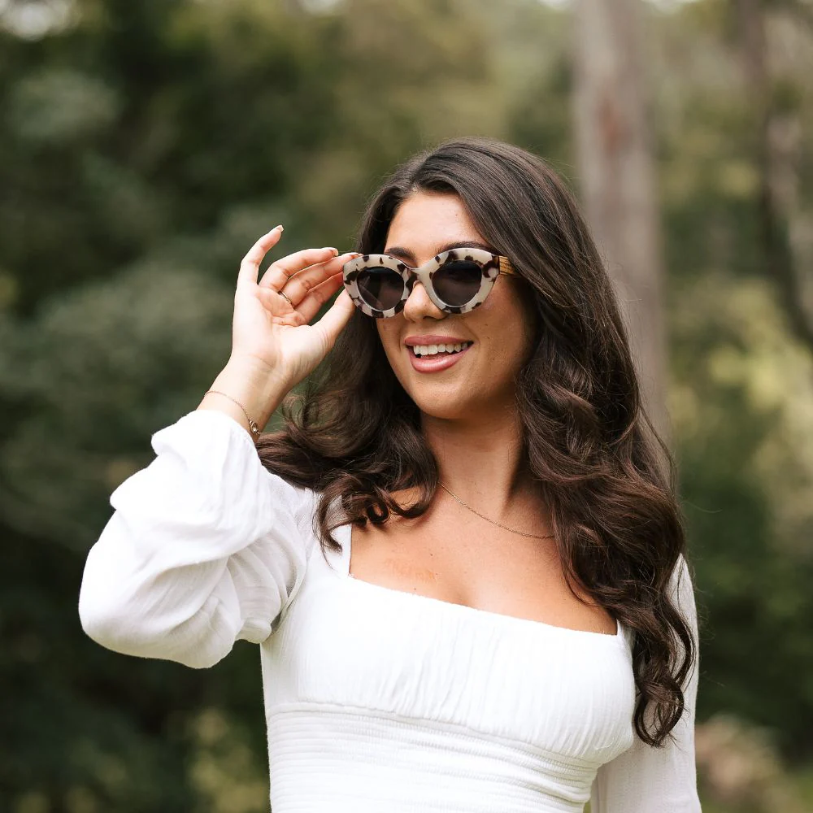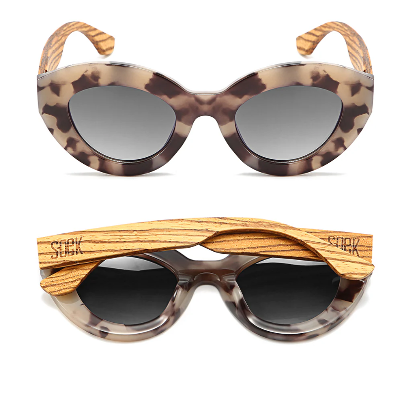 The Soek Stevie Ivory Tort Sunglasses are a true fashion statement, blending flattering curves with a hint of 50's glamour. Crafted in a creamy ivory tortoiseshell finish and fitted with Soek's UV400 polarised lenses, these sunglasses are the ultimate must-have accessory of the season.