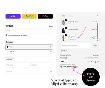 Just remember, VIP discounts apply to full-priced items only, no exceptions.