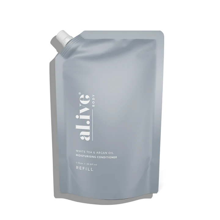 The al.ive body White Tea & Argan Oil Conditioner Refill offers a luxurious, eco-friendly way to nourish your hair. Enriched with argan oil and antioxidant-rich white tea extract, this naturally derived formula deeply hydrates and smooths, leaving your hair soft, shiny, and healthy—all without silicones or sulfates.