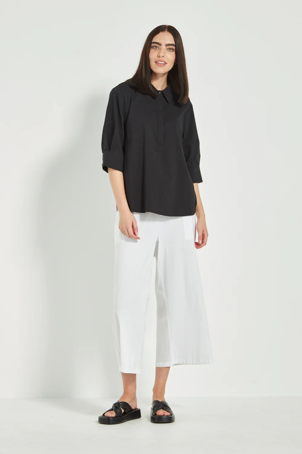 The Verge Acrobat Nori Top is a fresh new style for the season, featuring a half placket with a collared neckline for a modern touch. The statement lantern sleeves finish just above the elbow, adding subtle volume and feminine detail to this easy, wearable silhouette.