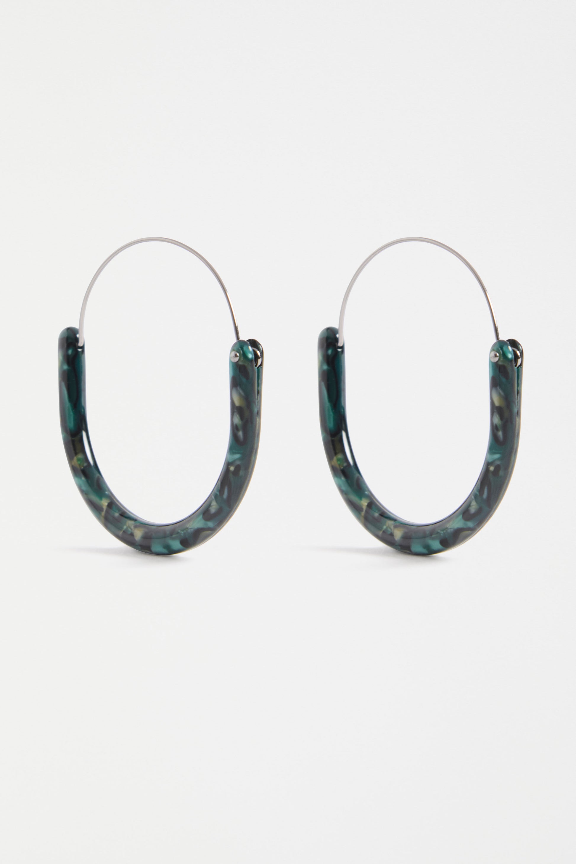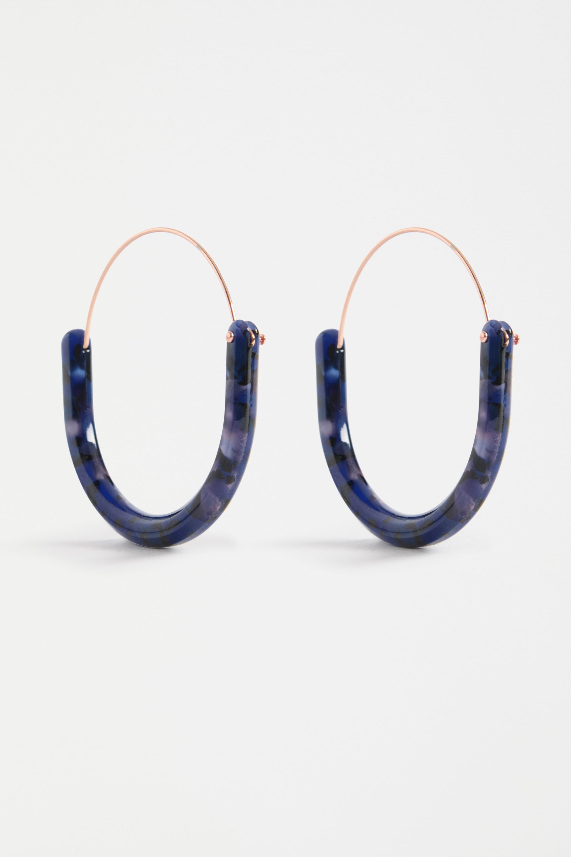Contemporary and lightweight, the ELK Aki Hoop Earring features two flat, patterned acetate pieces joined with a fine wire hoop for an easy-to-wear design. The abstract shape adds a modern edge, while the new-season colourways—Blue Tortoiseshell and Dark Green Tortoiseshell—bring a bold yet versatile pop to any outfit.
