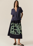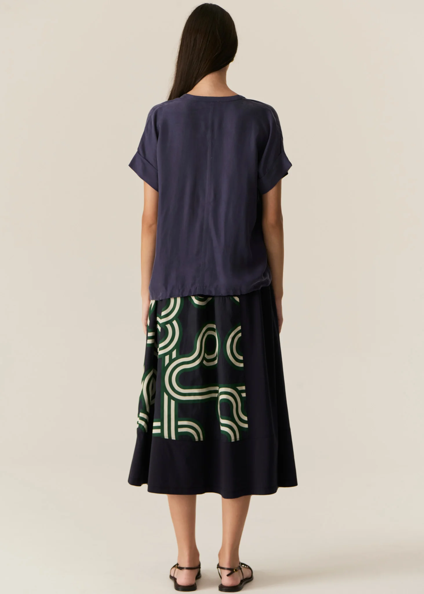 Full midi skirt silhouette.