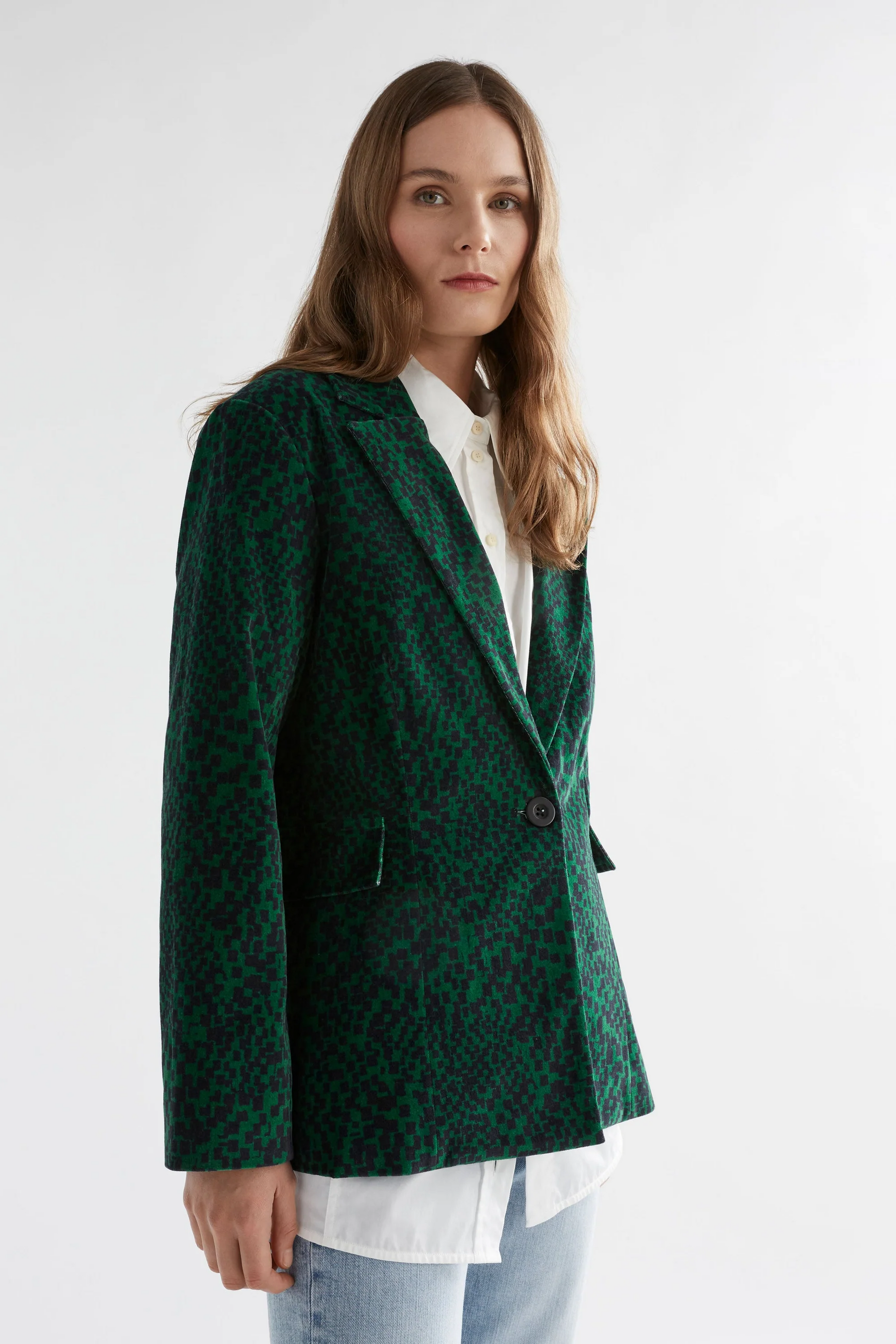 Tailored blazer cut for a sharp silhouette