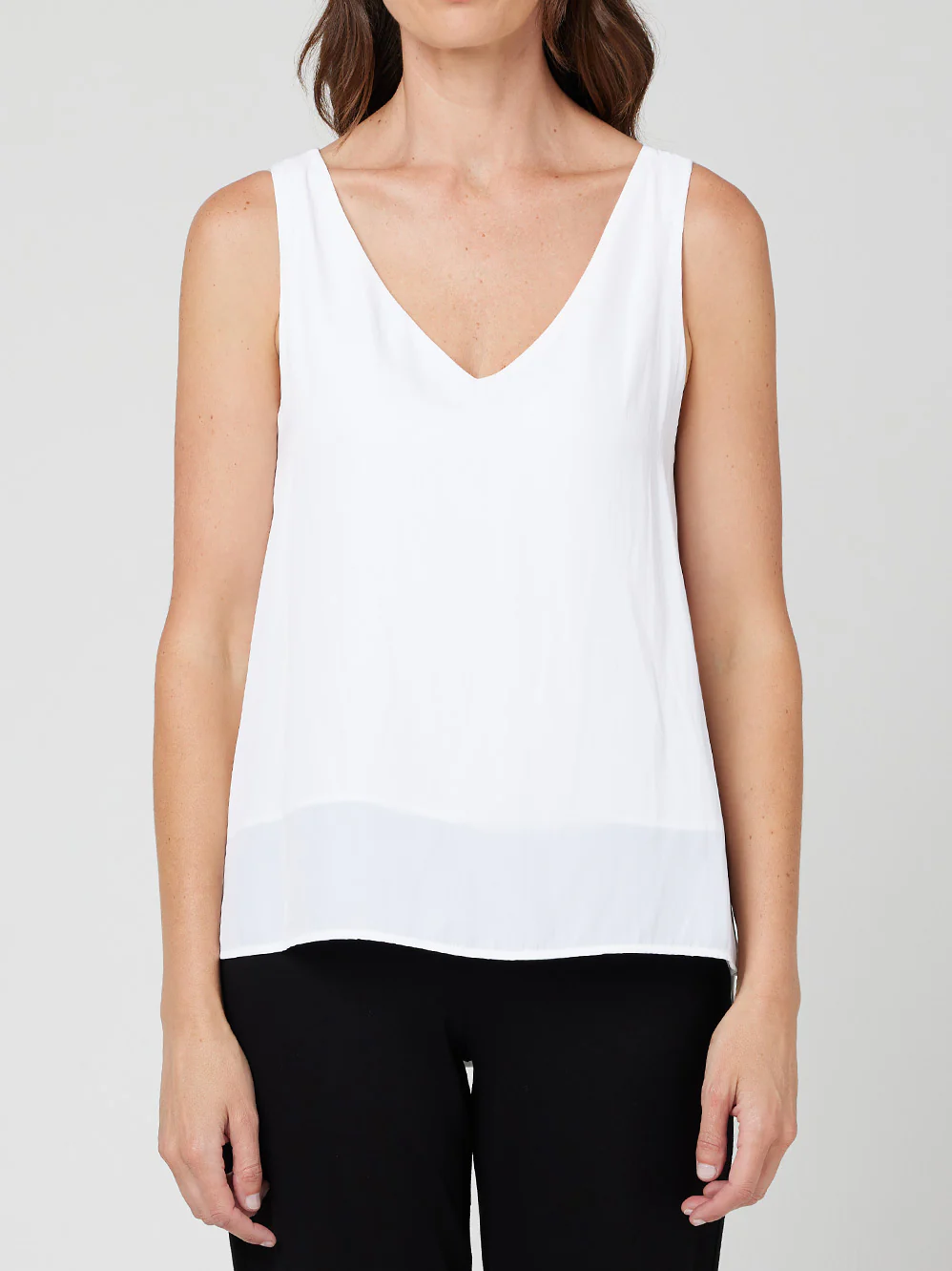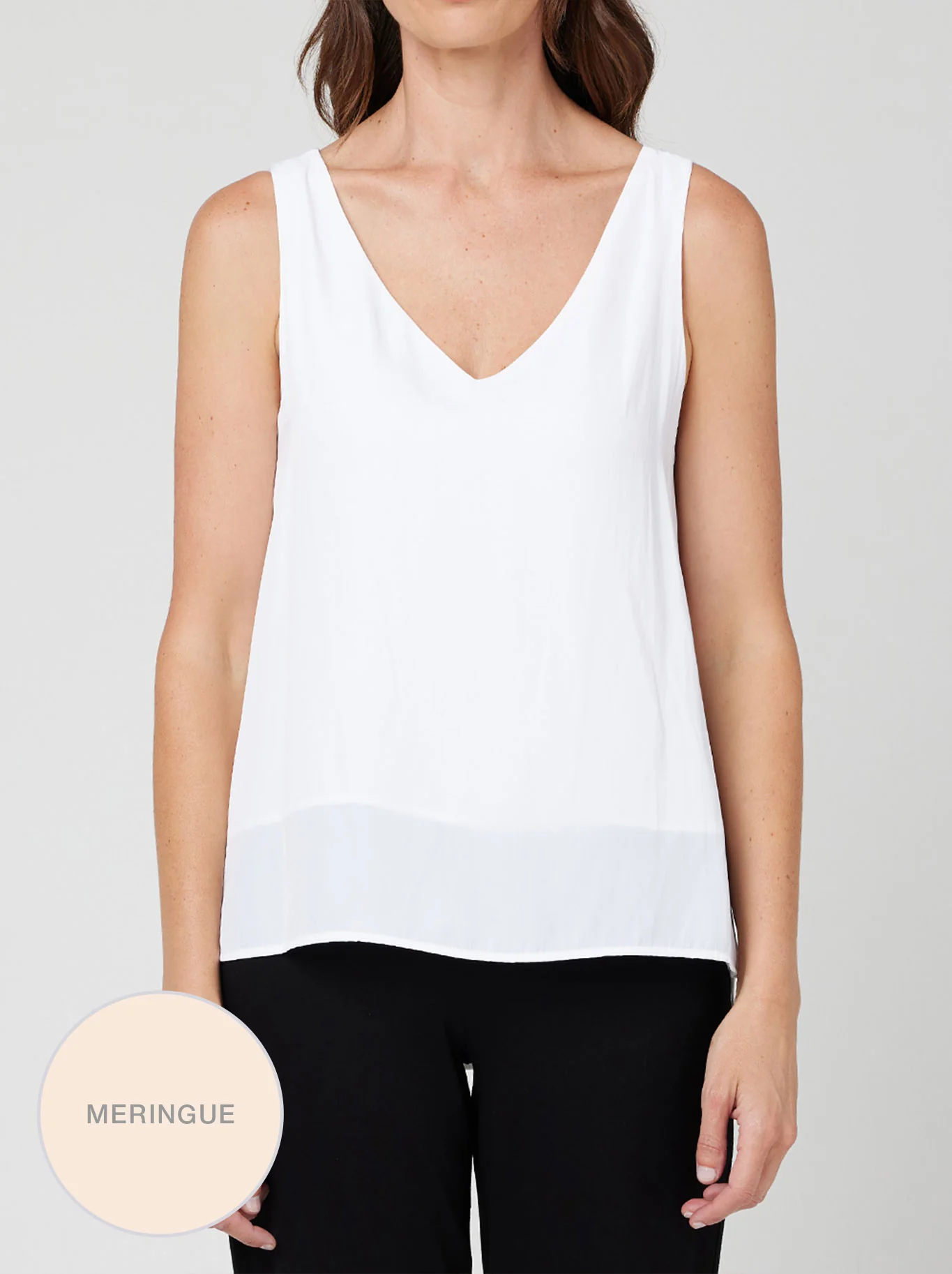 Crafted from Mela Purdie's fluid & luxurious Mache fabrication and featuring a soft v-neckline, fully covered back, stepped hem for longer length at the back, and a double-layered front for extra coverage, it is the perfect layering piece.