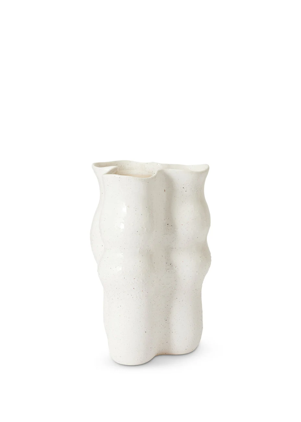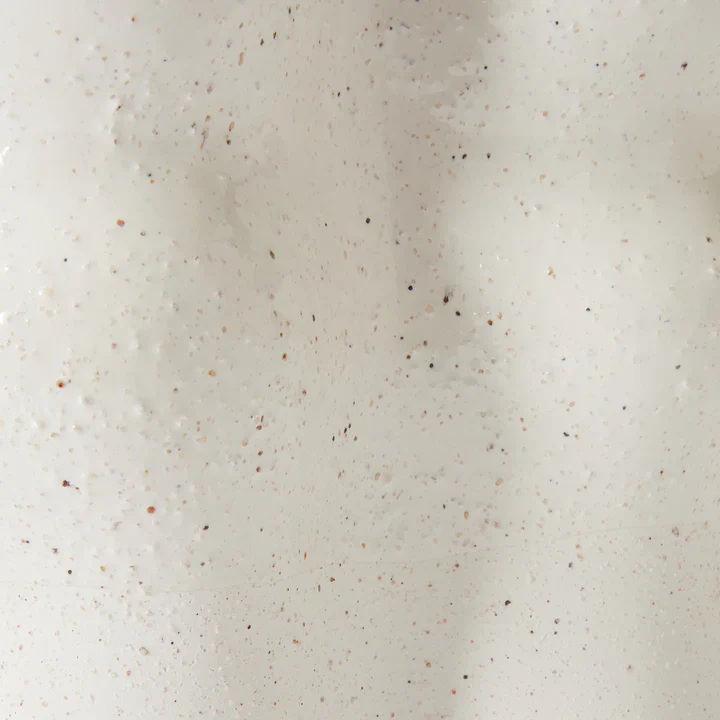 The Madras August Wavy Vase adds a touch of playful elegance with its distinctive wavy silhouette and half-dipped glaze. Its white ceramic base is adorned with raised, multi-colored speckles, creating a unique texture that makes this piece a standout. Perfect for showcasing fresh blooms or as a decorative accent on its own.