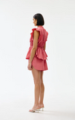 Slightly ruffled sleeves and peplum hem for feminine structure