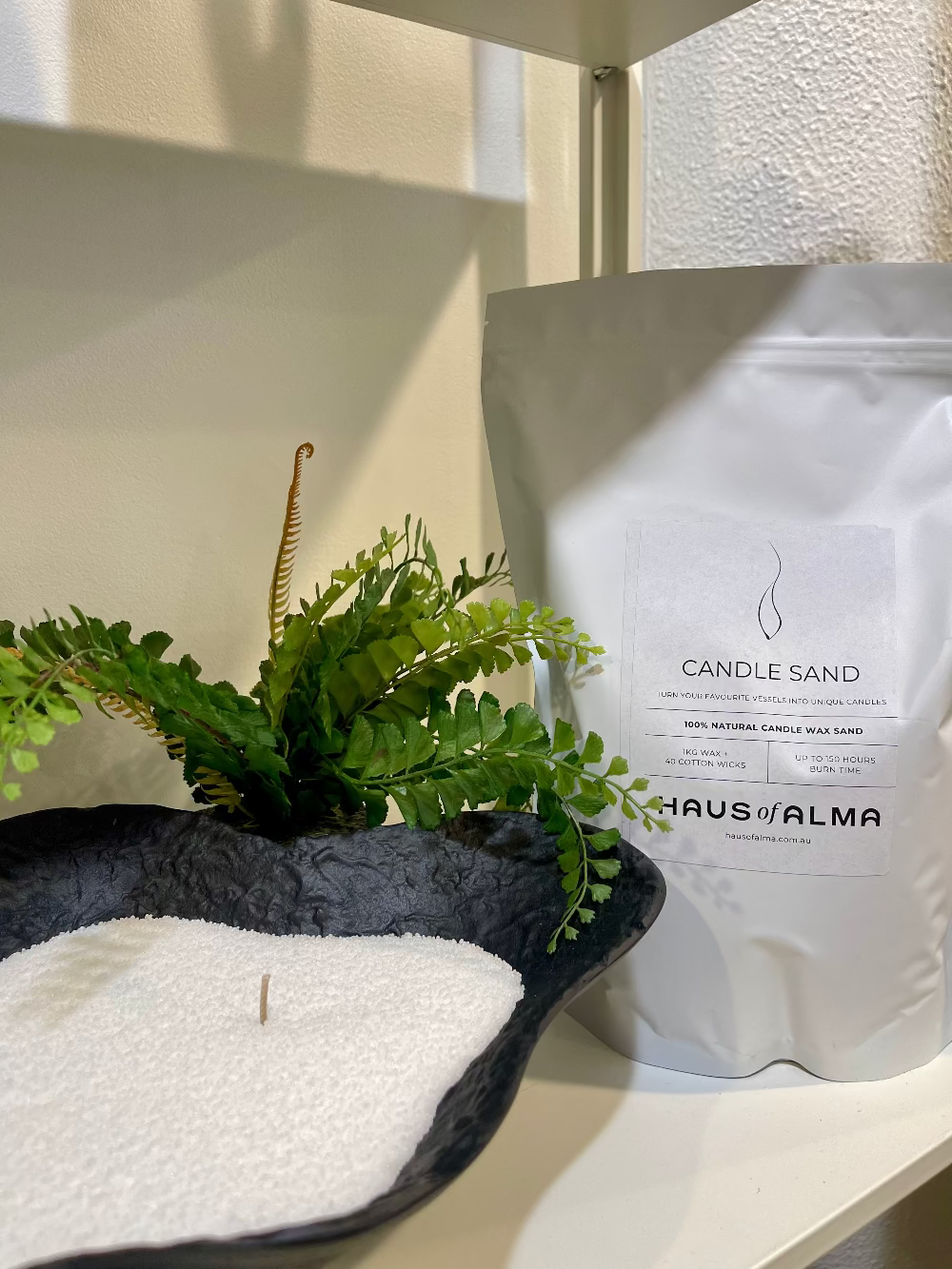 Create your own candle with ease using Haus of Alma's versatile Candle Wax Sand.