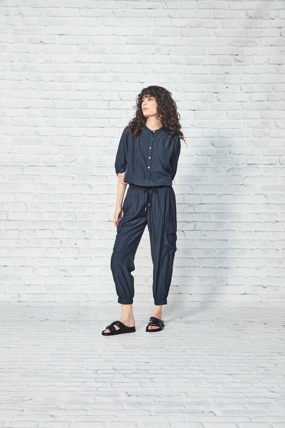 The Cleo Pant by Glide is a luxurious satin cargo pant with an elasticated waistband and concealed pockets. Featuring removable draw cords and silver aglet details, this relaxed leg pant offers both comfort and style. Perfect for any occasion, the Cleo Pant is a must-have addition to your wardrobe.