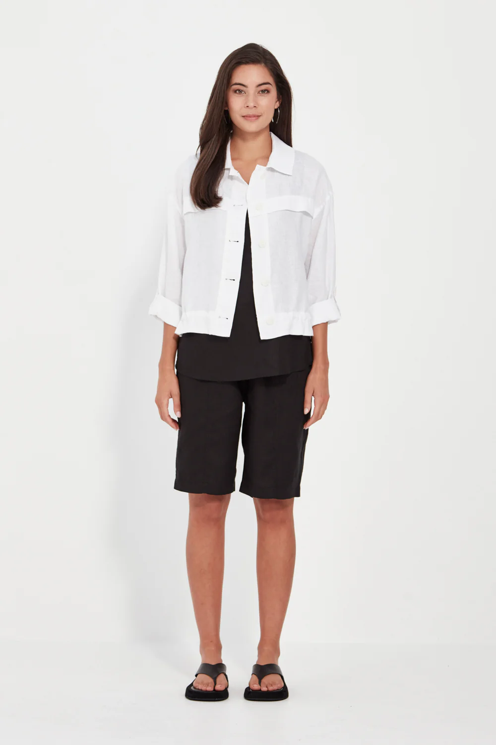 The Verge Echo Jacket is a relaxed utility-inspired style crafted from 100% linen for breathable comfort and effortless wear. Featuring a button-through front, classic collar, and full-length sleeves with adjustable button tabs, it offers versatility and ease. An internal drawcord allows you to define the waist for a more tailored silhouette. Lightweight and timeless, it’s the perfect layering piece—whether styled with linen pants or worn open over your favourite summer dress.