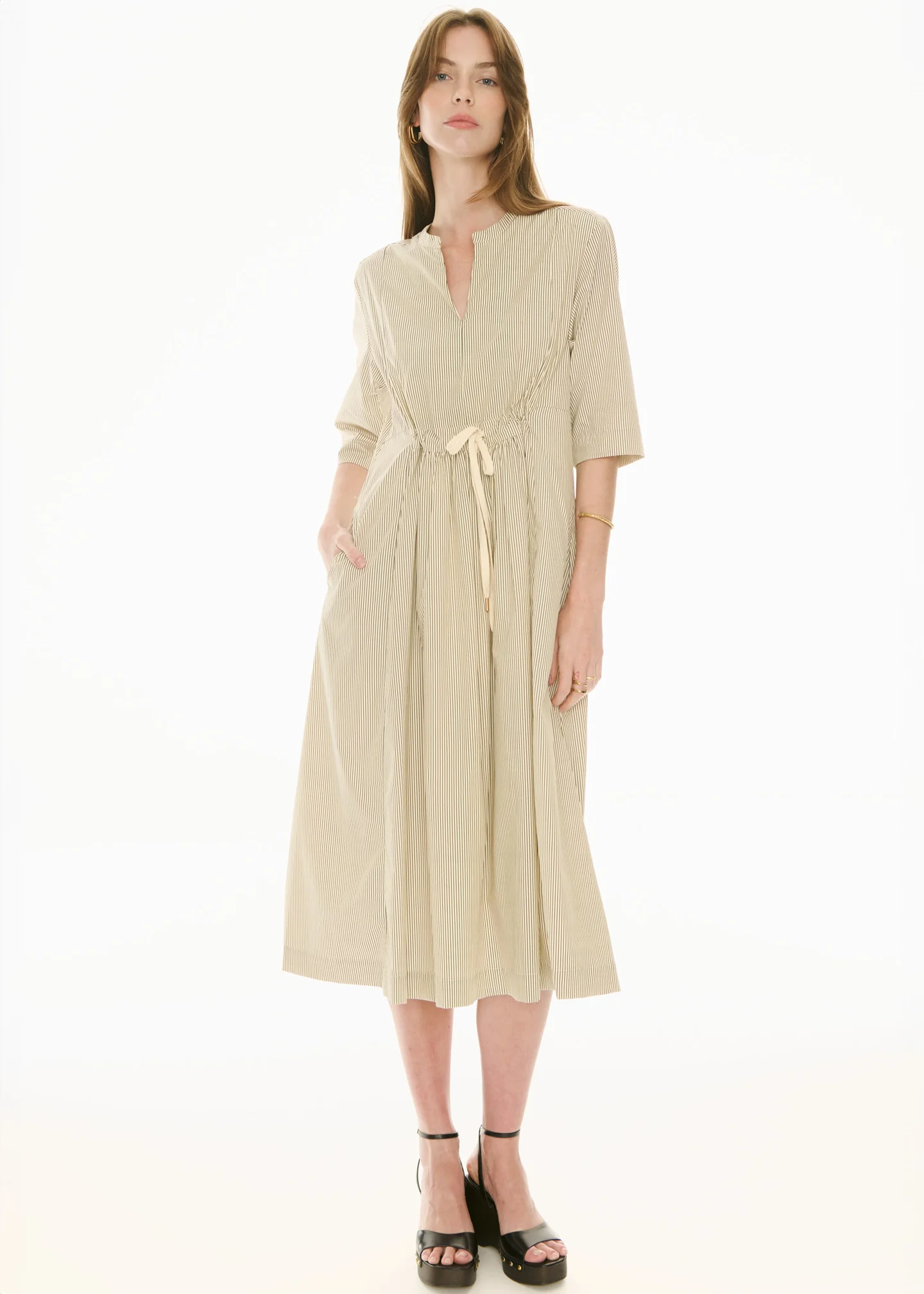 The Fable Shirt Dress in Ivory/Ink features a favourite POL silhouette, now available in a tonal cotton stripe.