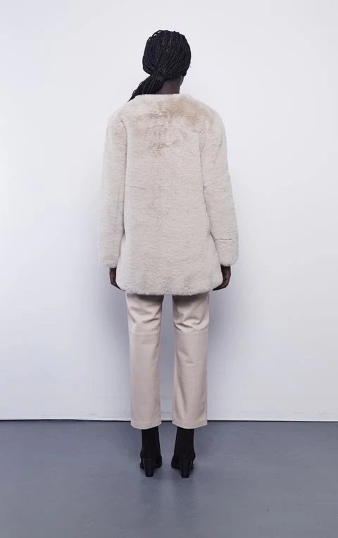 Indulge in timeless elegance with the DEA Faux Fur Long Coat in Aspen. Featuring a round neck and a slightly oversized silhouette, this coat effortlessly transitions from casual daytime chic to evening glamour.