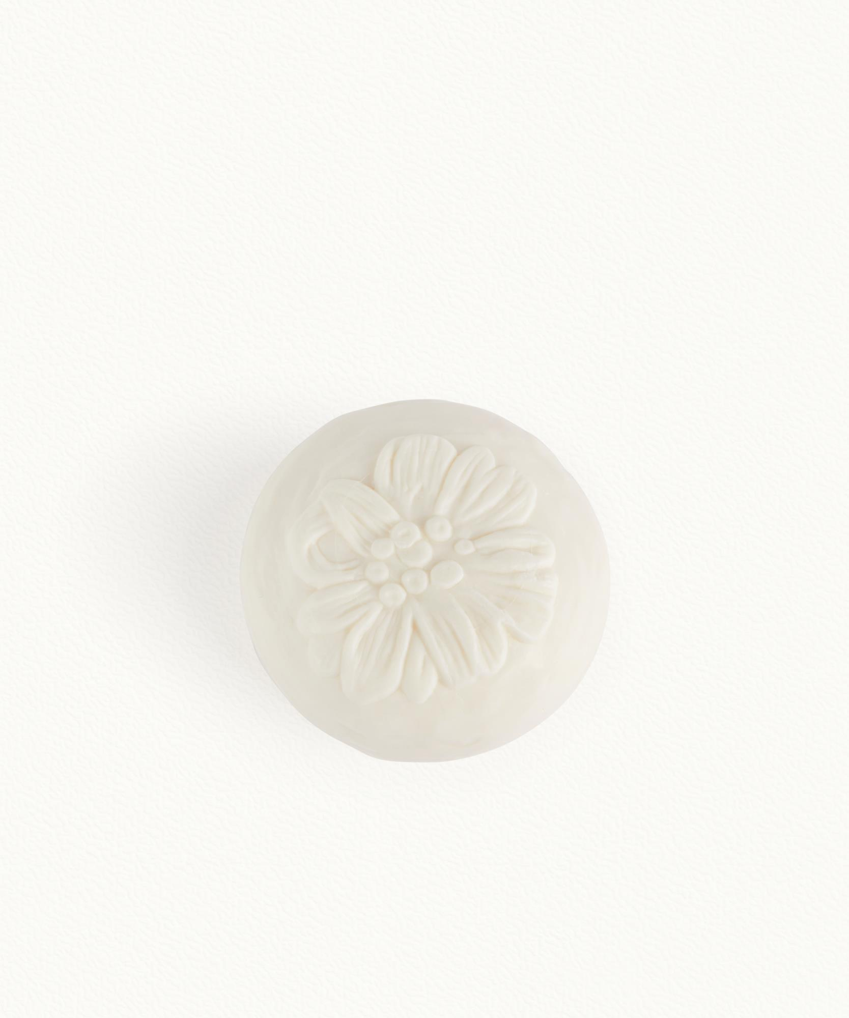 Grenade - Pivoine (Pomegranate - Peony). The iconic engraving on this soap and this soapdish release the delicious pomegranate fragrance that it represents, blended with a heart of peony and rose absolute on woody base notes of cedar and oak.