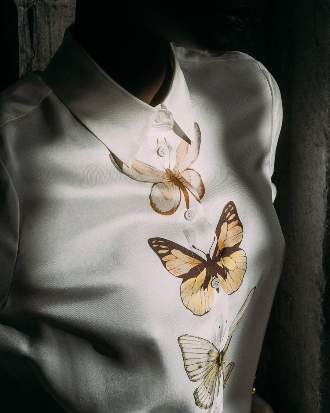 The Blouse 6190 by Herzen's Angelegenheit is crafted from a luxurious blend of 95% silk and 5% elastane, offering a smooth, lustrous finish with just the right amount of stretch. The silk provides an elegant sheen, while the elastane ensures a perfect fit that moves with you. Ideal for creating sophisticated looks with effortless comfort, this blouse is a versatile addition to any wardrobe.