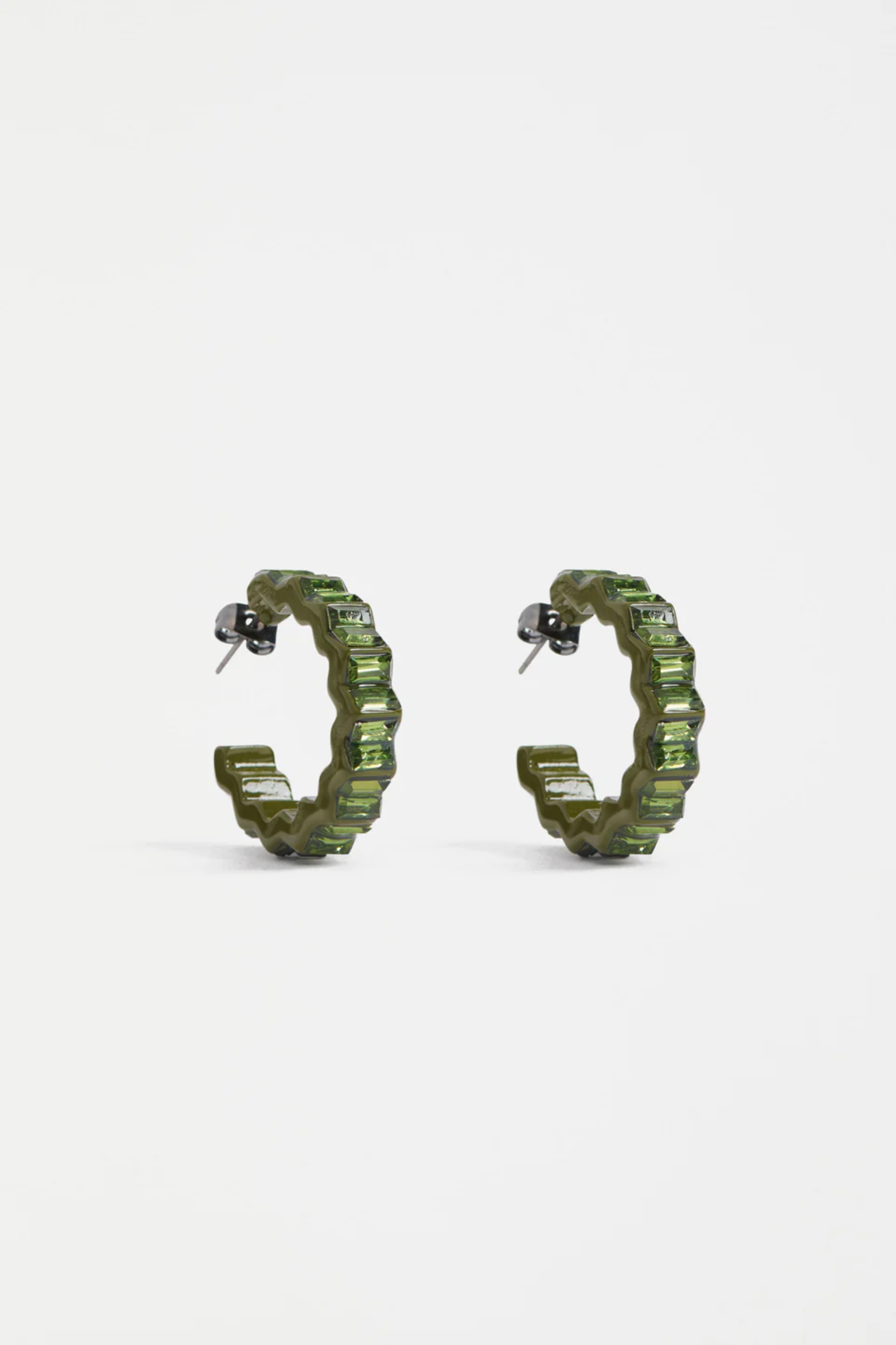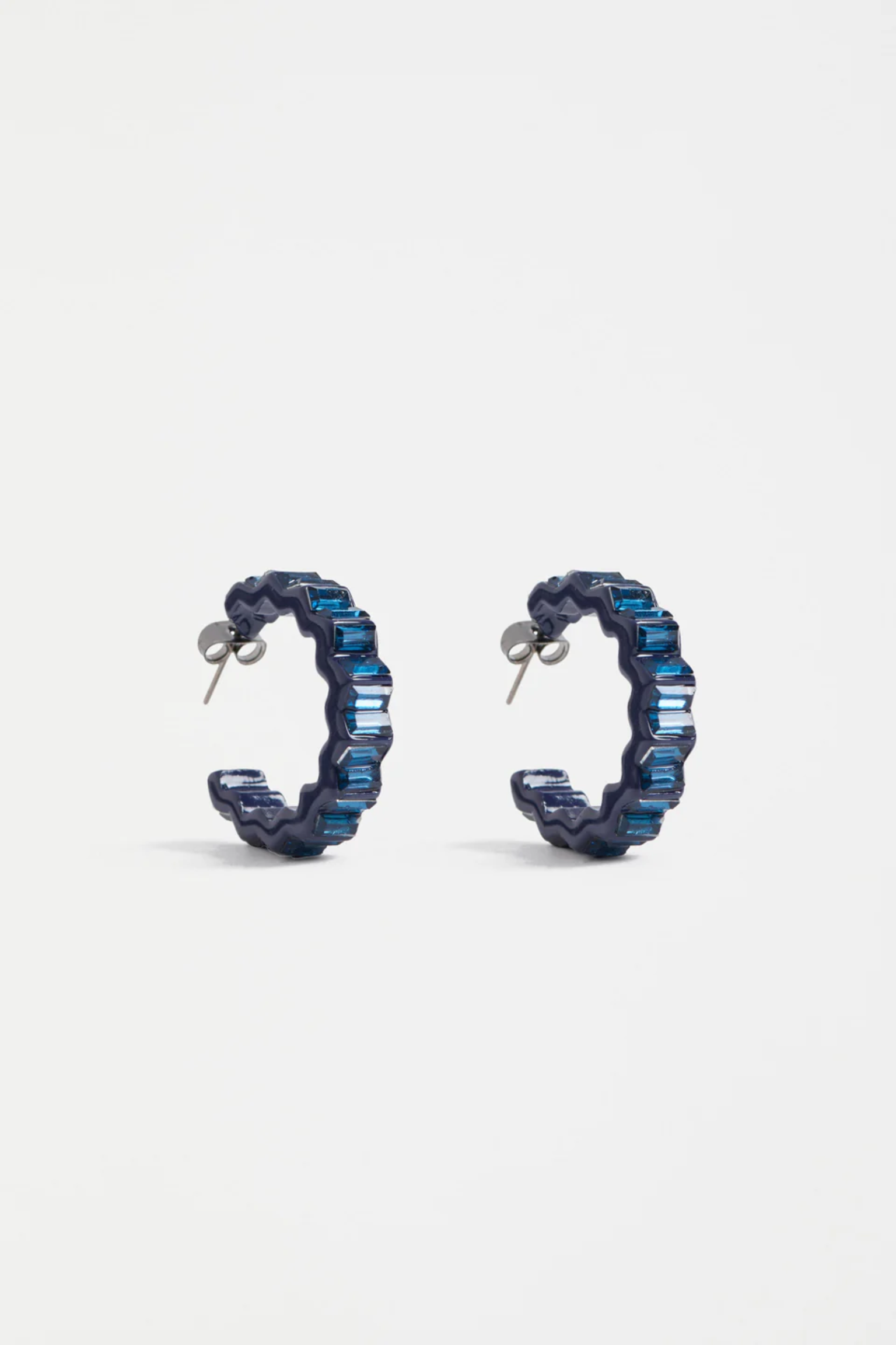 The ELK Jolle Hoop Earring will bring a playful, glisten to your outfits. These mid-sized enamel-covered hoops feature a slight zigzag shape accentuated with tonal glass beads adding texture and catching the light. Perfect for day and evening styling