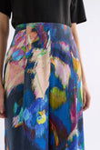 Make a statement with the vibrant Lato Pant in ELK’s exclusive Vaara print. Crafted from a textured waffle crepe, this high-waisted style features a fixed waistband with soft front tucks that create volume through the leg, while back darts gently shape the waist.