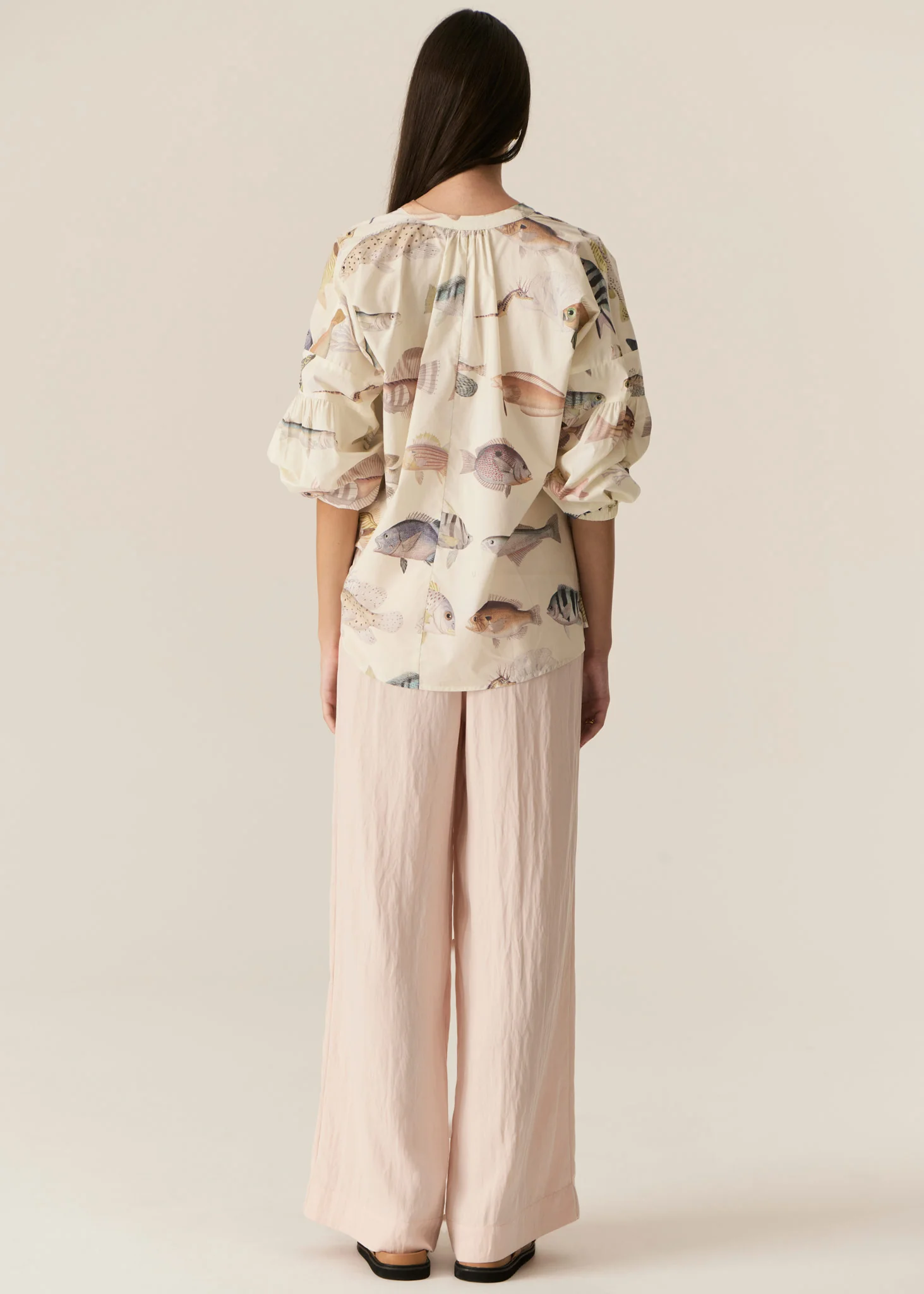 POL’s most-loved print makes its return in the Loup Shirt, showcasing the brand’s signature in-house designed aquatic motif. Crafted from 100% cotton voile, this shirt drapes effortlessly with its soft, oversized silhouette. Featuring a stand collar, button-through closure with covered placket, dropped armholes, and bracelet-length balloon sleeves with elasticised cuffs, it’s a modern blend of ease and elegance.