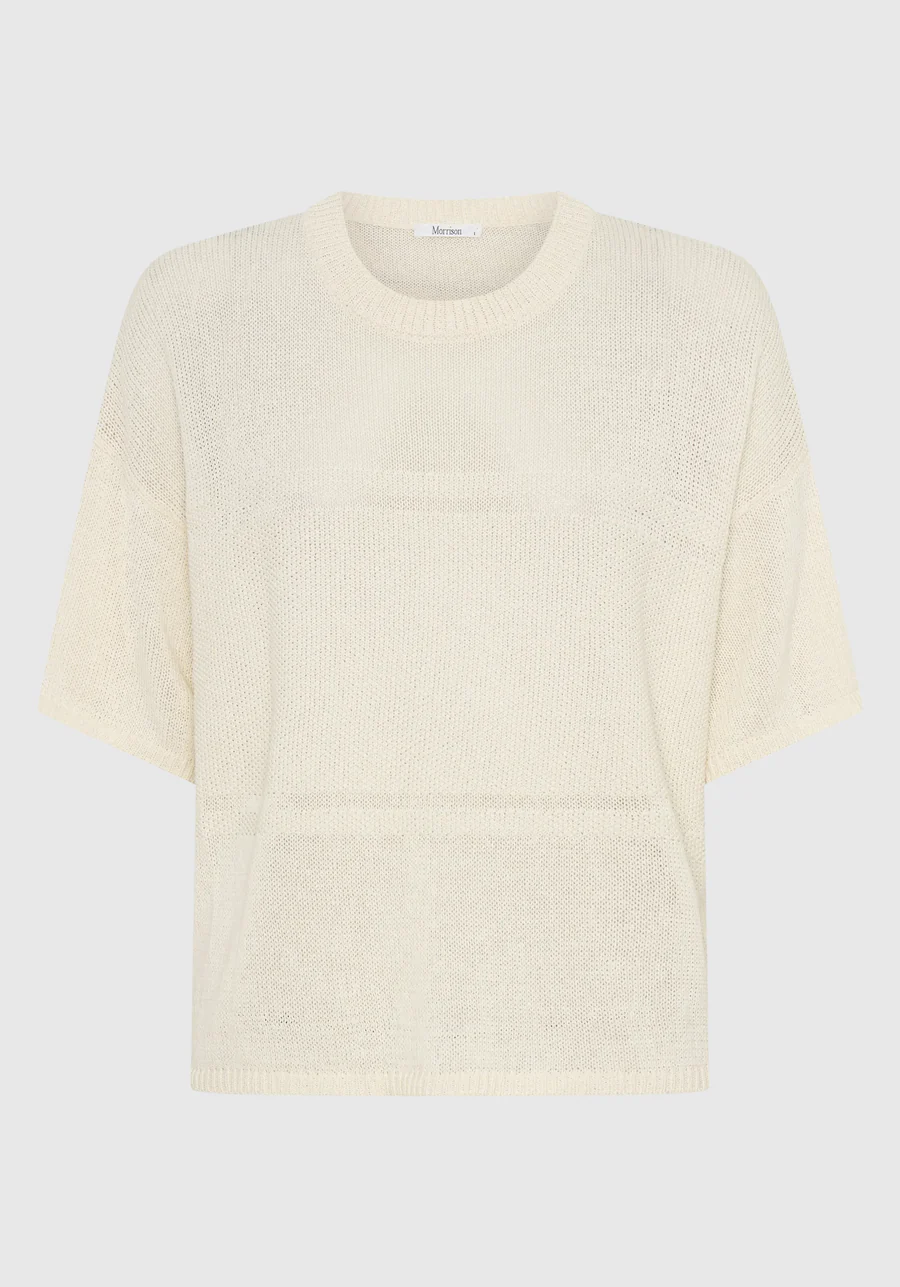 The Morrison Marli Knit Tee is made from a soft cotton-paper blend yarn, designed with a classic round neckline and short sleeves. Featuring contrast stitch panels and ribbed trims at the neckline, cuffs, and hem, it offers a modern boxy fit for effortless layering or standalone wear.