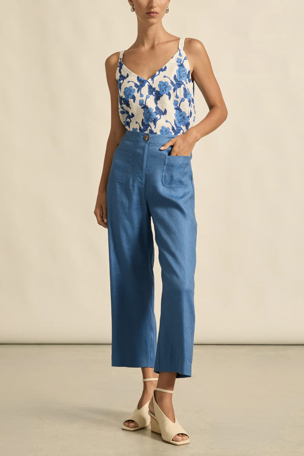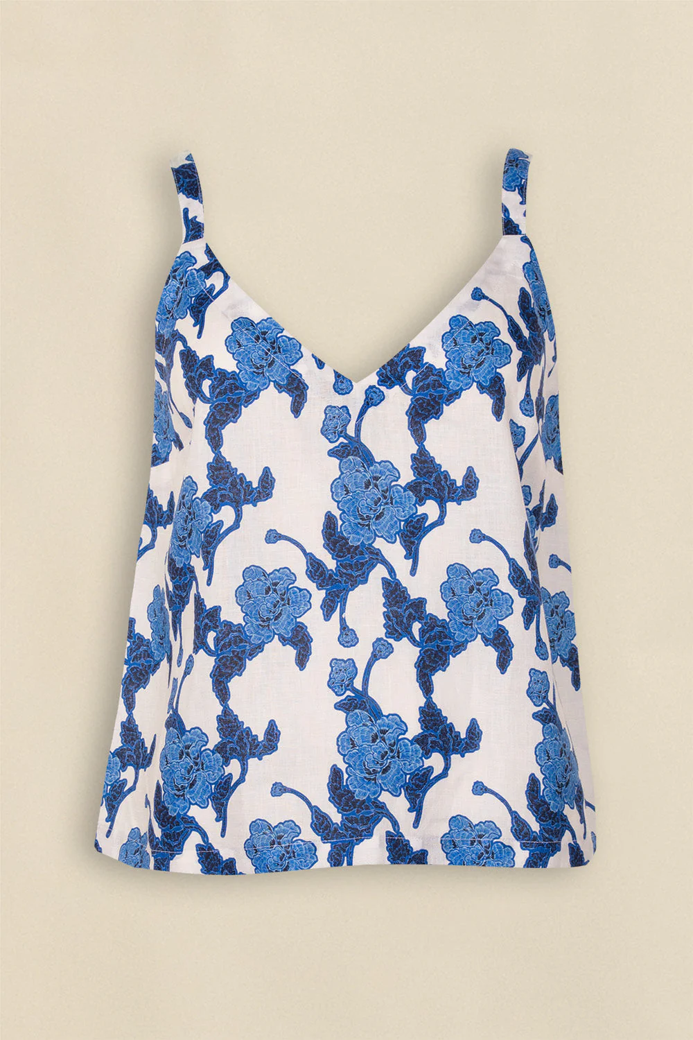 Effortless and refined, the Zoe Kratzmann Memo Top in the exclusive Azure Bouquet print offers a fresh take on the classic cami. Crafted from 100% linen, it features wide-set straps for comfort, a flattering V-neckline, and a clean, minimalist silhouette. Wear it solo or layered—your go-to piece for easy summer styling.