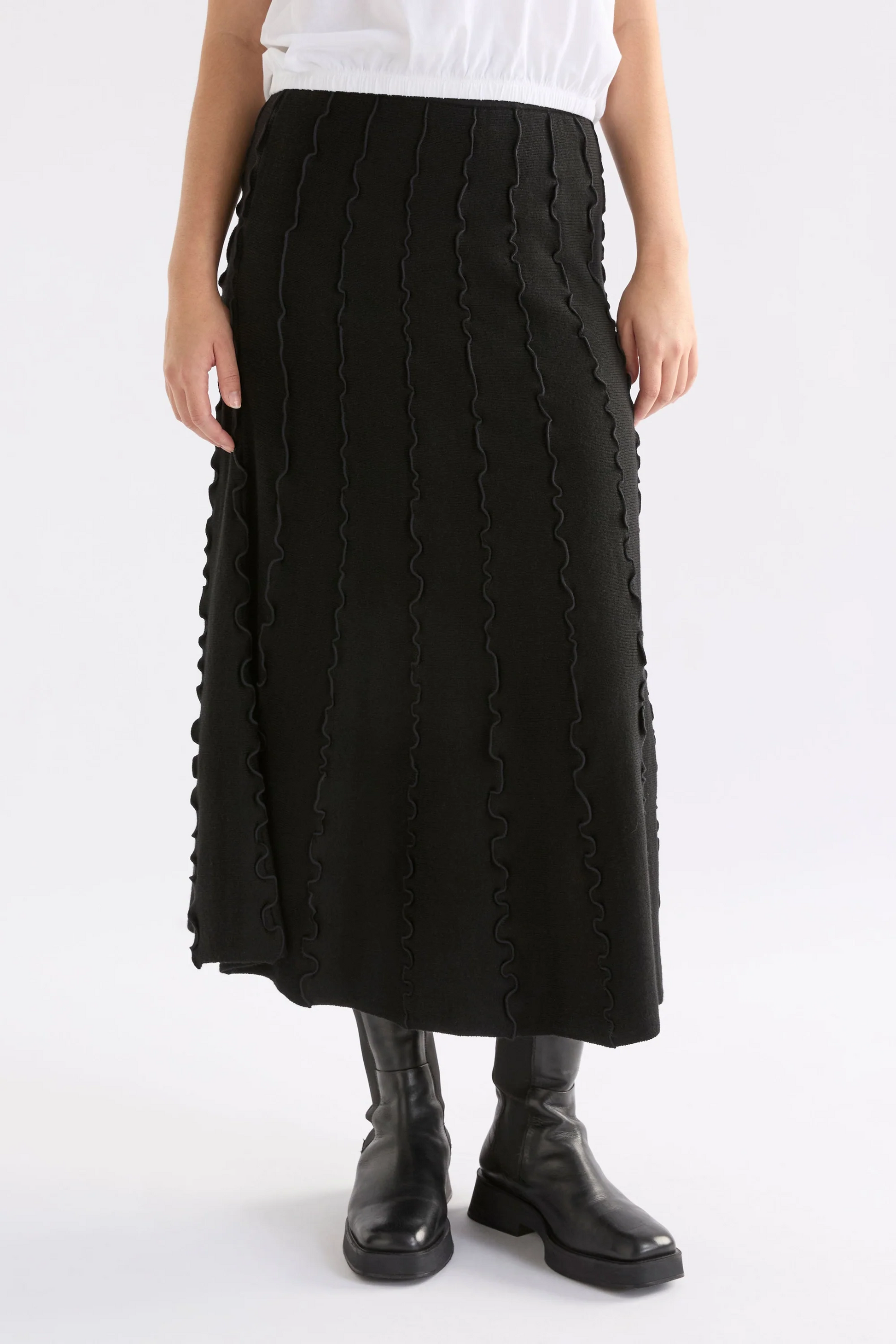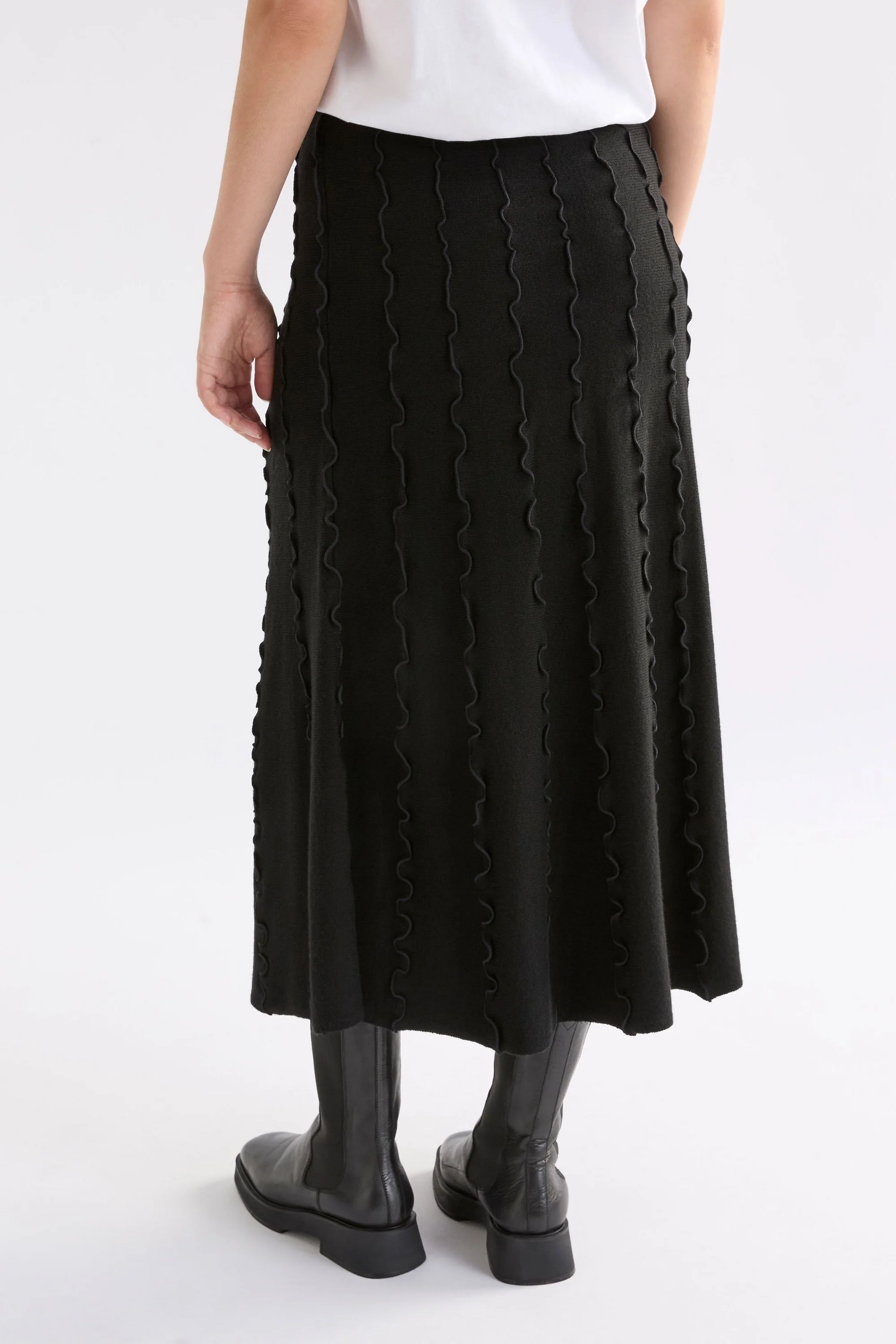 The Musse Knit Skirt sits high on the waist with a regular fit, skimming neatly over the hips before falling into an A-line shape.