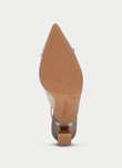 Crafted from premium leather, it features a sleek pointed toe for a flattering, elongated look and a 6.5 cm geometric heel that perfectly balances height and ease. A chic appliqué detail adorns the upper, while the adjustable buckle strap ensures a secure, tailored fit.