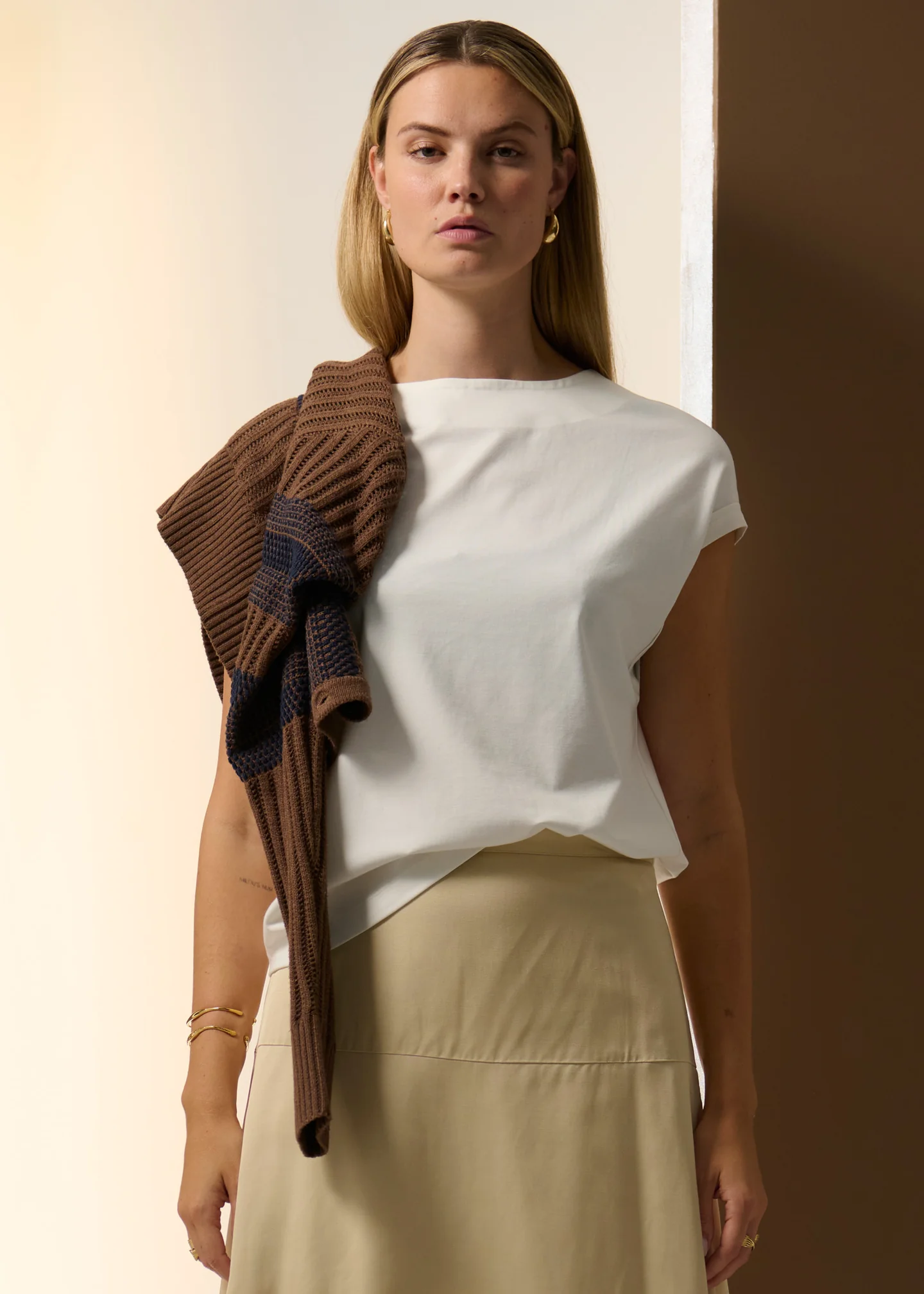 Inspired by POL Clothing's bestselling Mast Tee, the Odie Tee is made from an elevated, drapey jersey with a knitted detail at the cuffs.