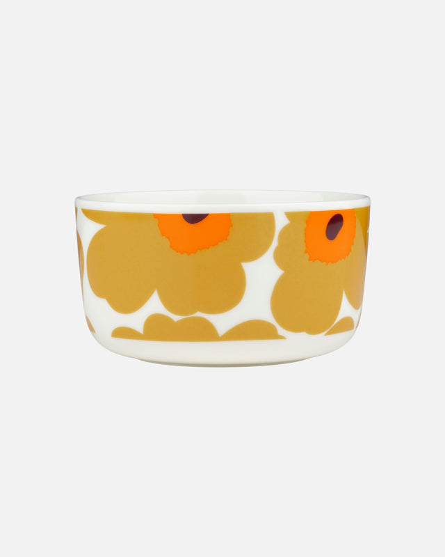 The Marimekko Oiva bowl with Unikko pattern is made of white stoneware that is dishwasher, oven, microwave and freezer proof.