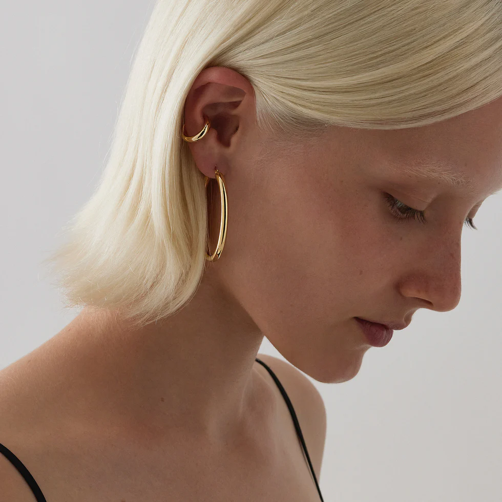 The Orbit Hoop Earrings from NAJO celebrate the fluid motion and meaningful connections that shape your world. With bold oval curves and a sculptural silhouette, these impeccably handcrafted hoops feature hidden lever clasps for a sleek, seamless finish. Striking yet refined, they offer a cosmic blend of elegance and edge—perfect for those who love to make a statement.