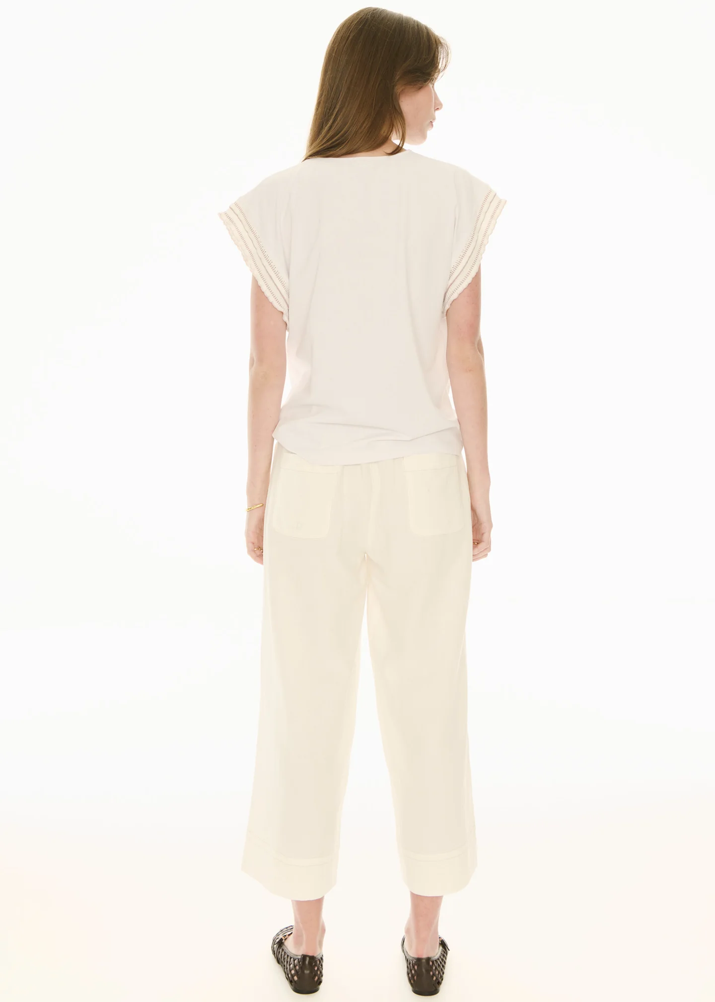 Mid rise waist with elastic at the centre back for comfort.