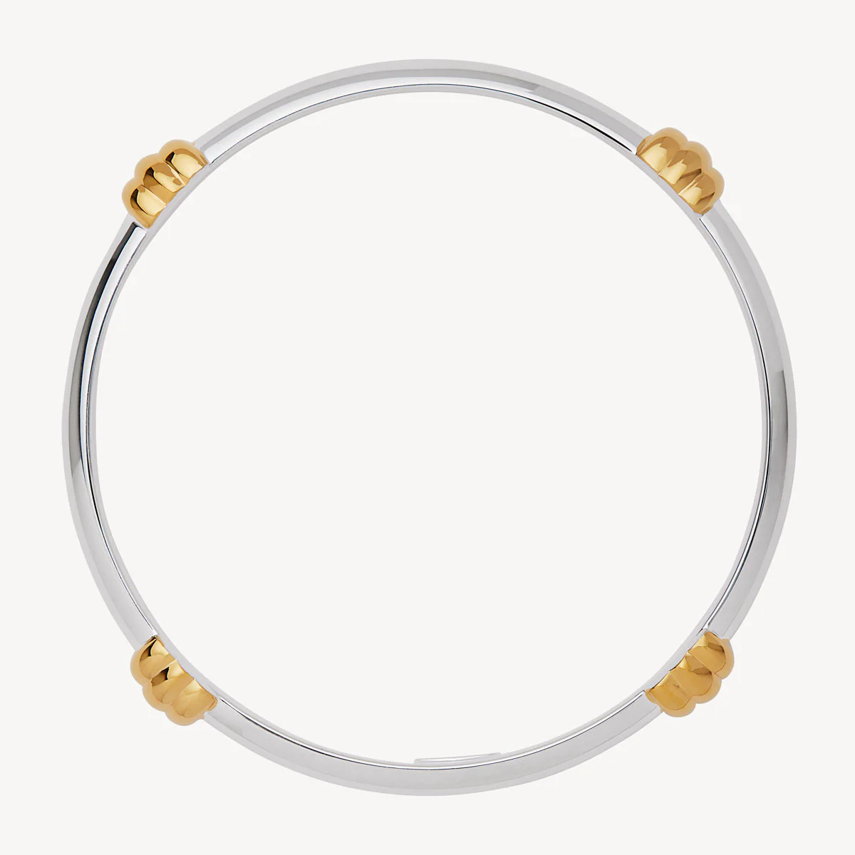 Inspired by Paris’s iconic bridges, this effortlessly glamorous NAJO creation is a potent symbol of connection. Her four yellow gold plated ridged ‘bridges’ span the width of the sterling silver half-round bangle, creating an elegant two-tone aesthetic. Thanks to her versatility, the Pont D’Or, meaning Bridge of Gold, is perfect for uniting your gold and silver layering stories.