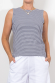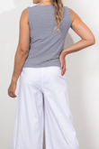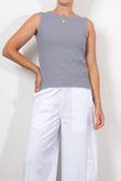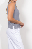 Crafted from Mela Purdie’s signature Yacht Stripe Jersey, this core silhouette is soft, stretch-friendly, and easy to wear. The rounded neckline and relaxed fit make it endlessly practical, while small side splits give freedom of movement and a touch of ease.