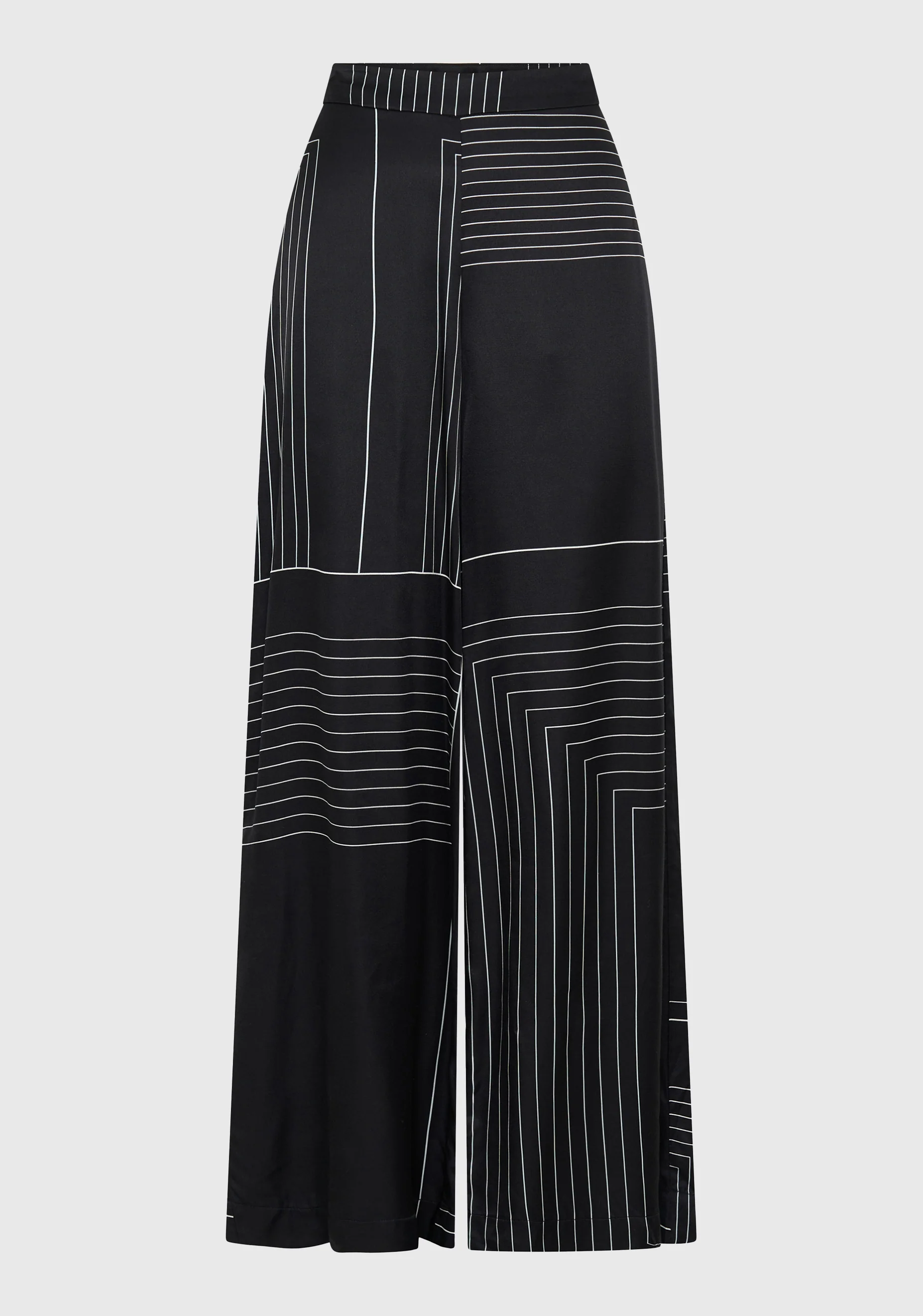 Crafted from a luxurious silk blend, the Morrison Priya Pant features an exclusive print in a striking wide-leg silhouette. Designed to sit high on the waist, these full-length trousers offer effortless drape and elegant movement—perfect for elevated everyday wear.