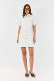 The Sarah Denim Mini Shirt Dress from Sofia Irina offers a laidback, relaxed shirting silhouette with a rigid denim feel. This dress is designed to make a statement, offering a versatile and stylish option for all occasions.
