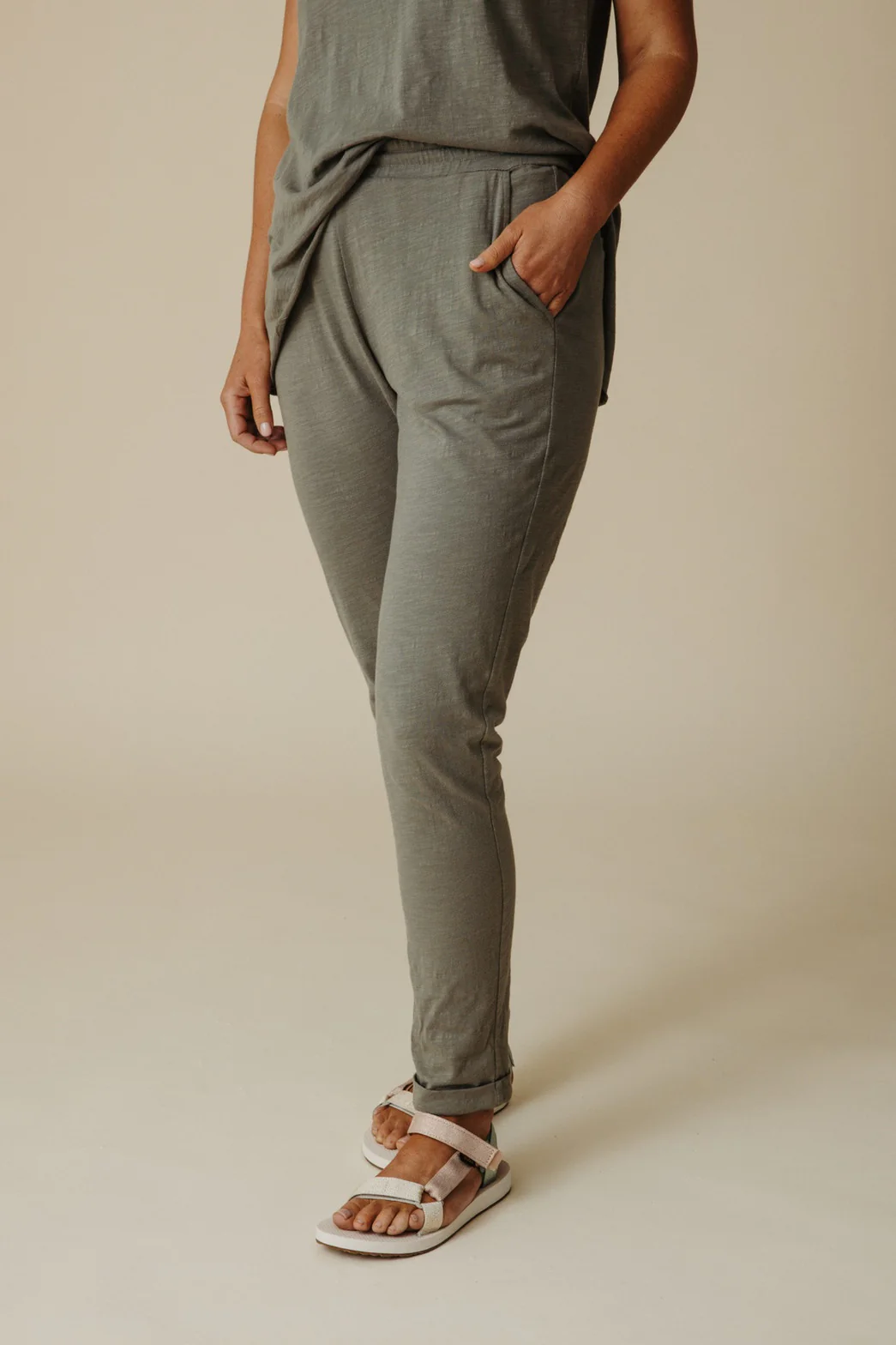shoreline breeze fine slub pant - dusty olive