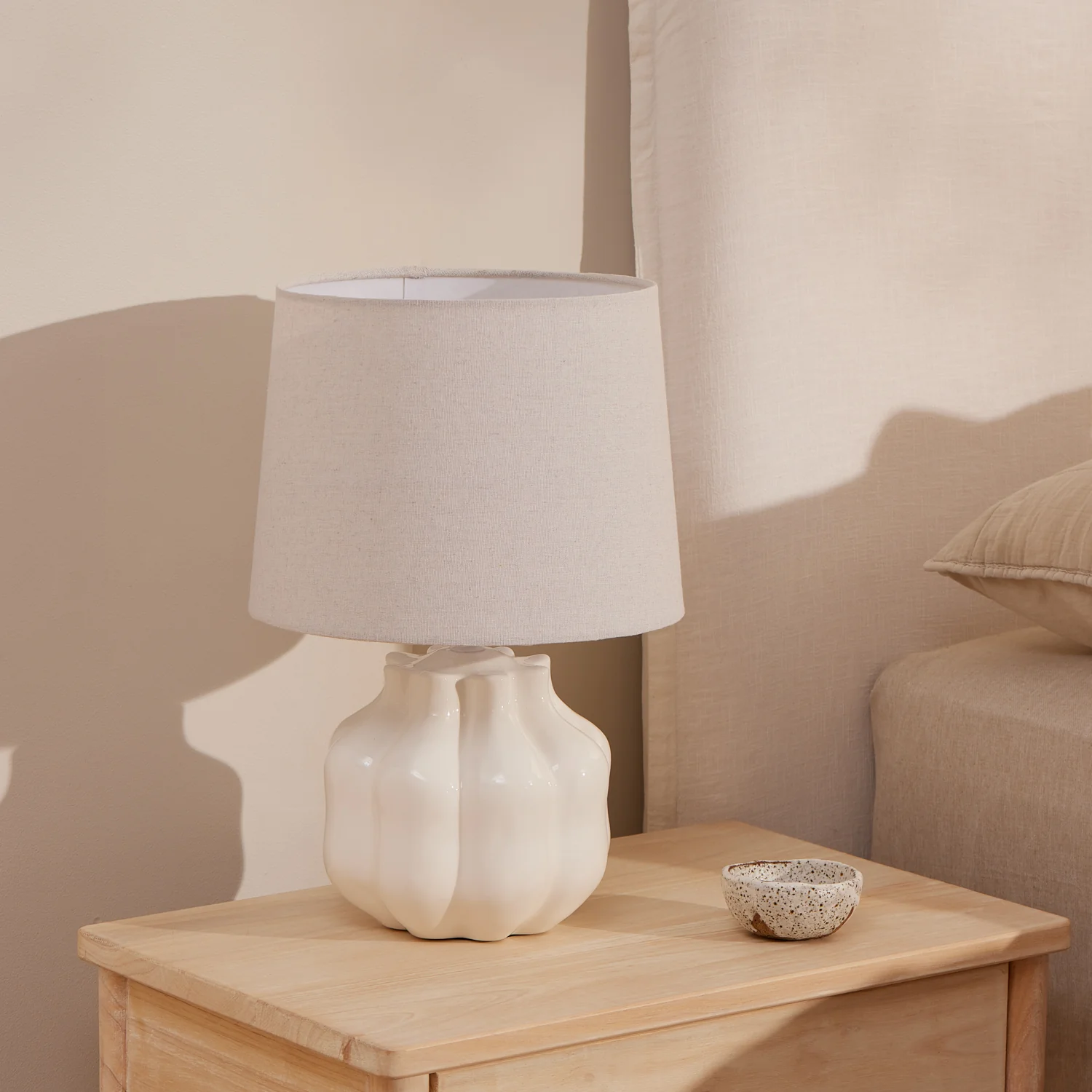 The Madras Somerset Table Lamp combines modern simplicity with timeless charm. Featuring a smooth ceramic base in neutral white tone, and topped with a classic tapered white shade, it casts a warm, diffused glow—perfect for creating a cosy, inviting atmosphere.