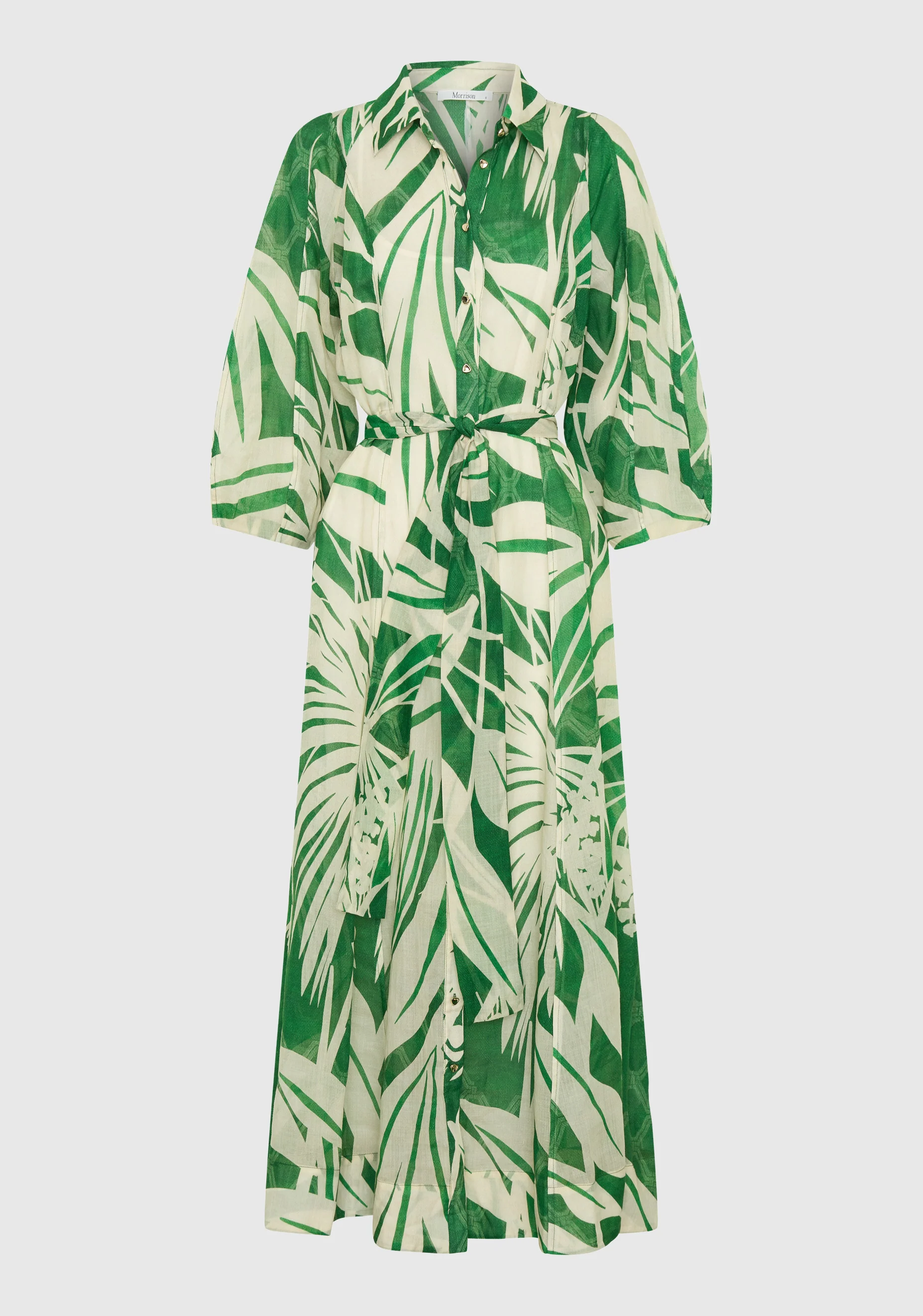 Crafted from midweight cotton in an exclusive Morrison print, the Sorrento Shirt Dress blends classic tailoring with feminine ease. Featuring a traditional collar, button-through front, and 3/4 sleeves with pintuck detailing, it falls to a softly flared midi skirt for graceful movement. A detachable waist tie defines the silhouette, while a separate slip provides effortless comfort and coverage.