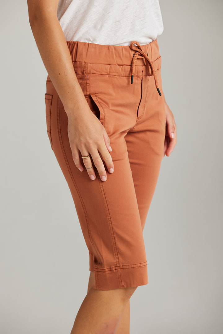 Introducing Lania the Label's Spice Shorts: These knee-length shorts are crafted for a comfortable and laid-back experience. They come with an elasticated waistband featuring an adjustable drawstring for the utmost comfort. The style showcases intricate heavy embroidery stitching, side leg panels, and convenient side welt pockets. To achieve a distressed appearance and a soft, comfortable feel, these shorts undergo garment dyeing.