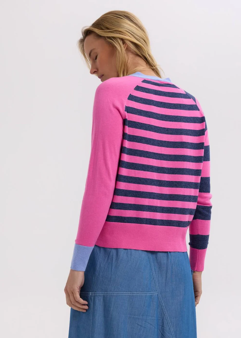 The Split Cardi by Zaket & Plover is a vibrant twist on a best-loved silhouette. Featuring an asymmetrical design with contrasting tones, vertical and horizontal stripes, and standout cuffs, it’s a knit that’s full of personality.