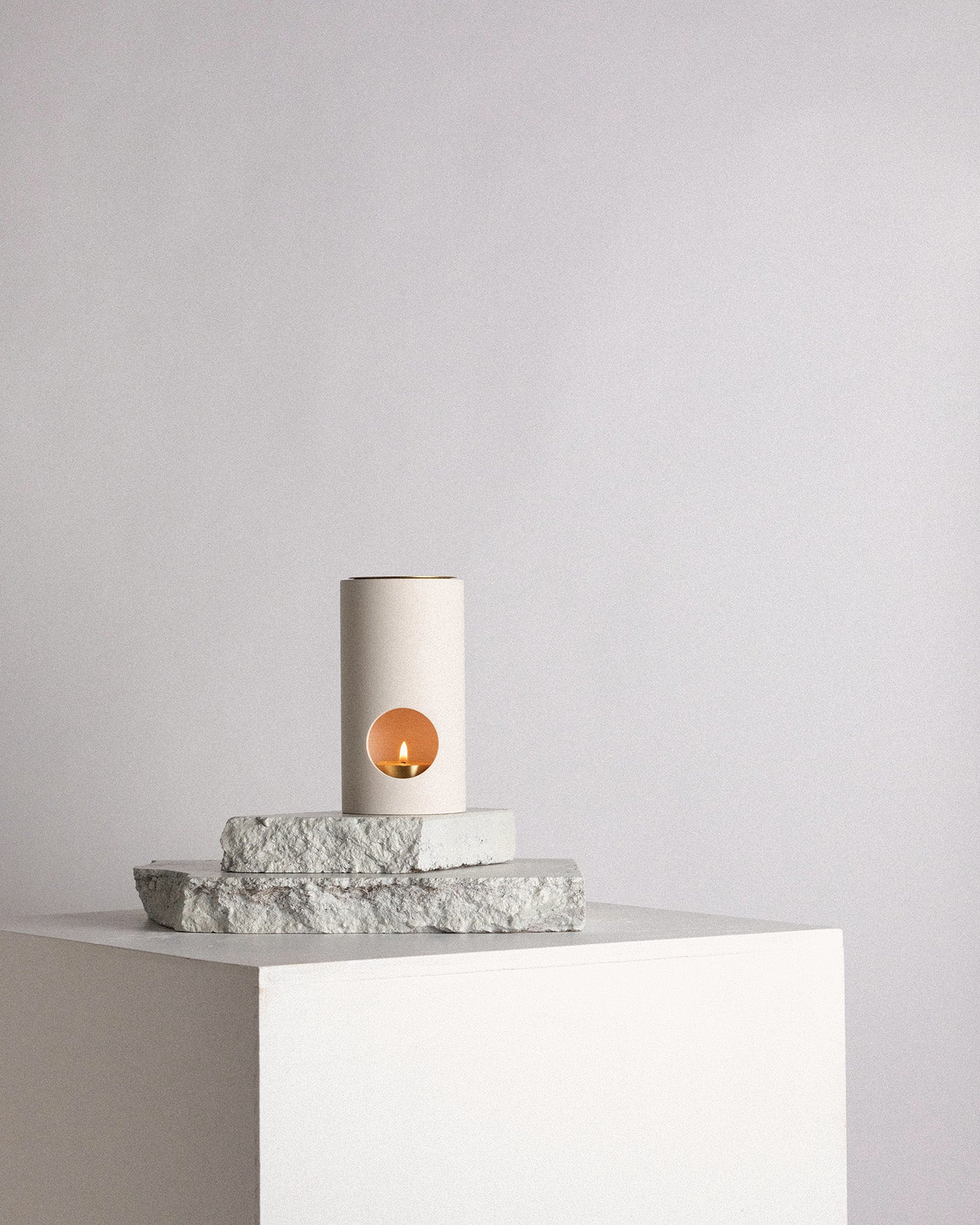 Marble Oil Burner unit with brass Dish, and brass tealight candle holder. This design from Byron Bay's Addition Studio cross polinates Minimalism with Brutalism to create the ultimate modern Aromatherapy accessory. Includes 5ml tester of Lavender Essential Oil and Australian made Beeswax candle.