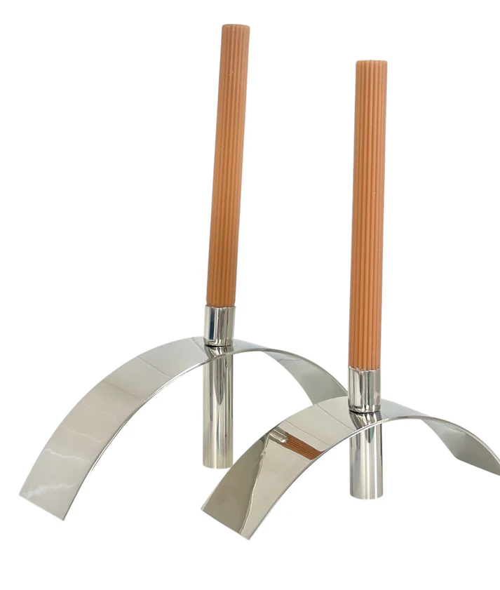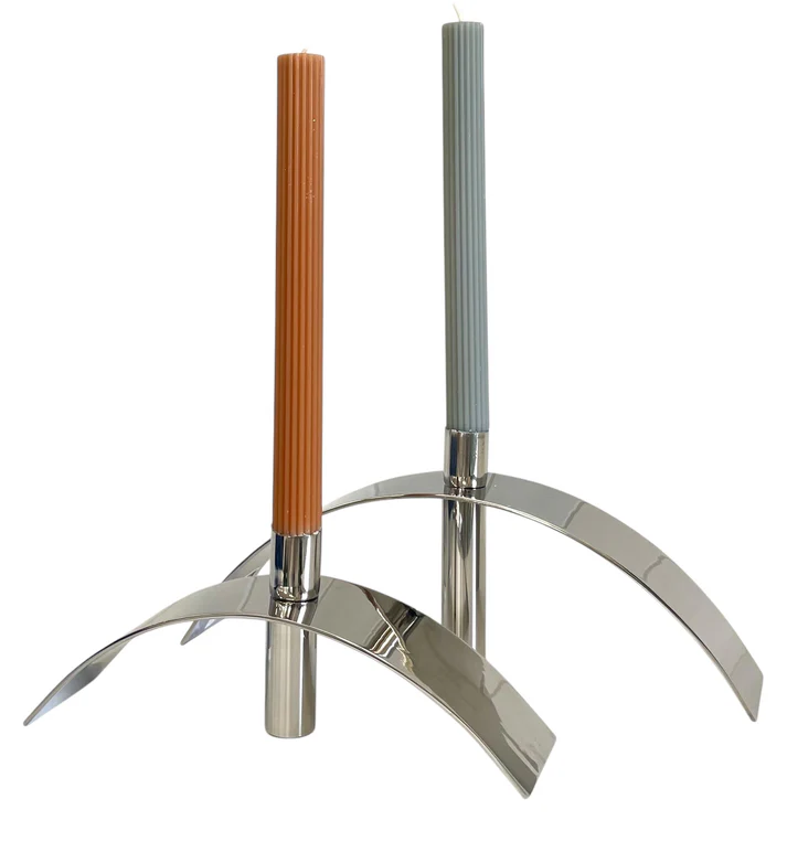 Elevate your home with the timeless elegance of the Flair Chrome Taper Candle Holders, inspired by the refined artistry of Danish design. Featuring a sleek arched silhouette and a polished nickel-plated finish, this piece brings understated luxury to any setting. Available in two sizes—Small (10cm) and Large (13cm)—it's the perfect accent for your favourite candles.