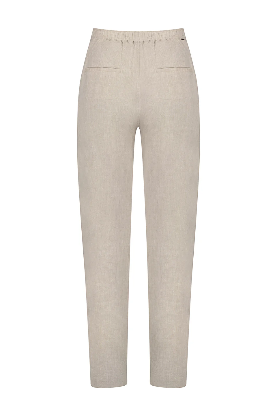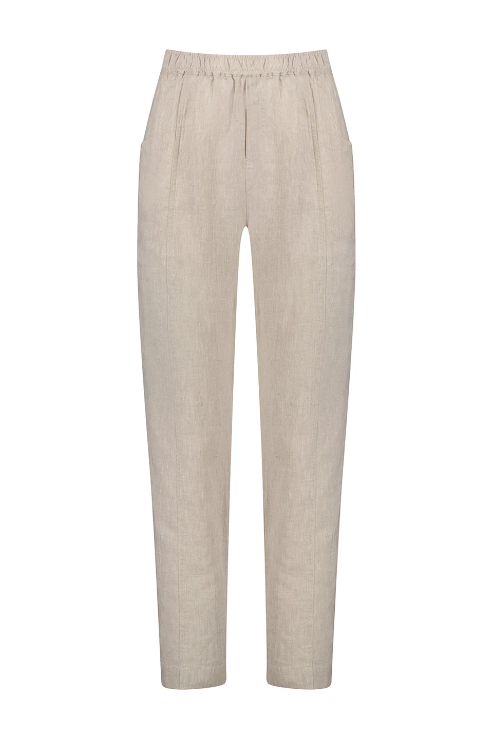 The Verge Taylor Pant, crafted from 100% linen, offers ultimate comfort with its elasticated waistband and relaxed slim-leg design. Featuring side pockets and a sleek front seam detail, this ankle-length pant is the perfect blend of style and ease.