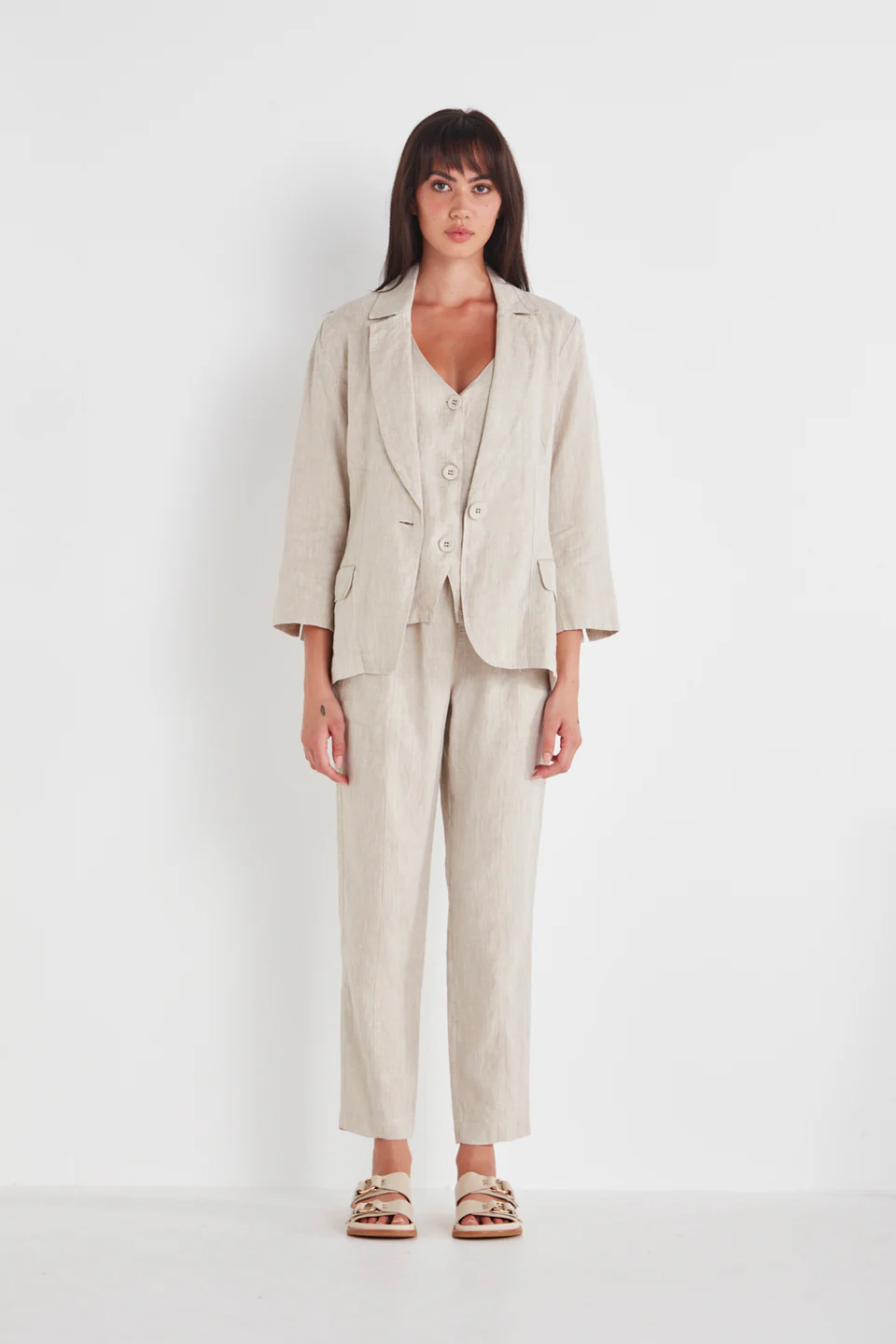 The Taylor Pant pairs perfectly with the Verge Proof Jacket for a coordinated linen look.